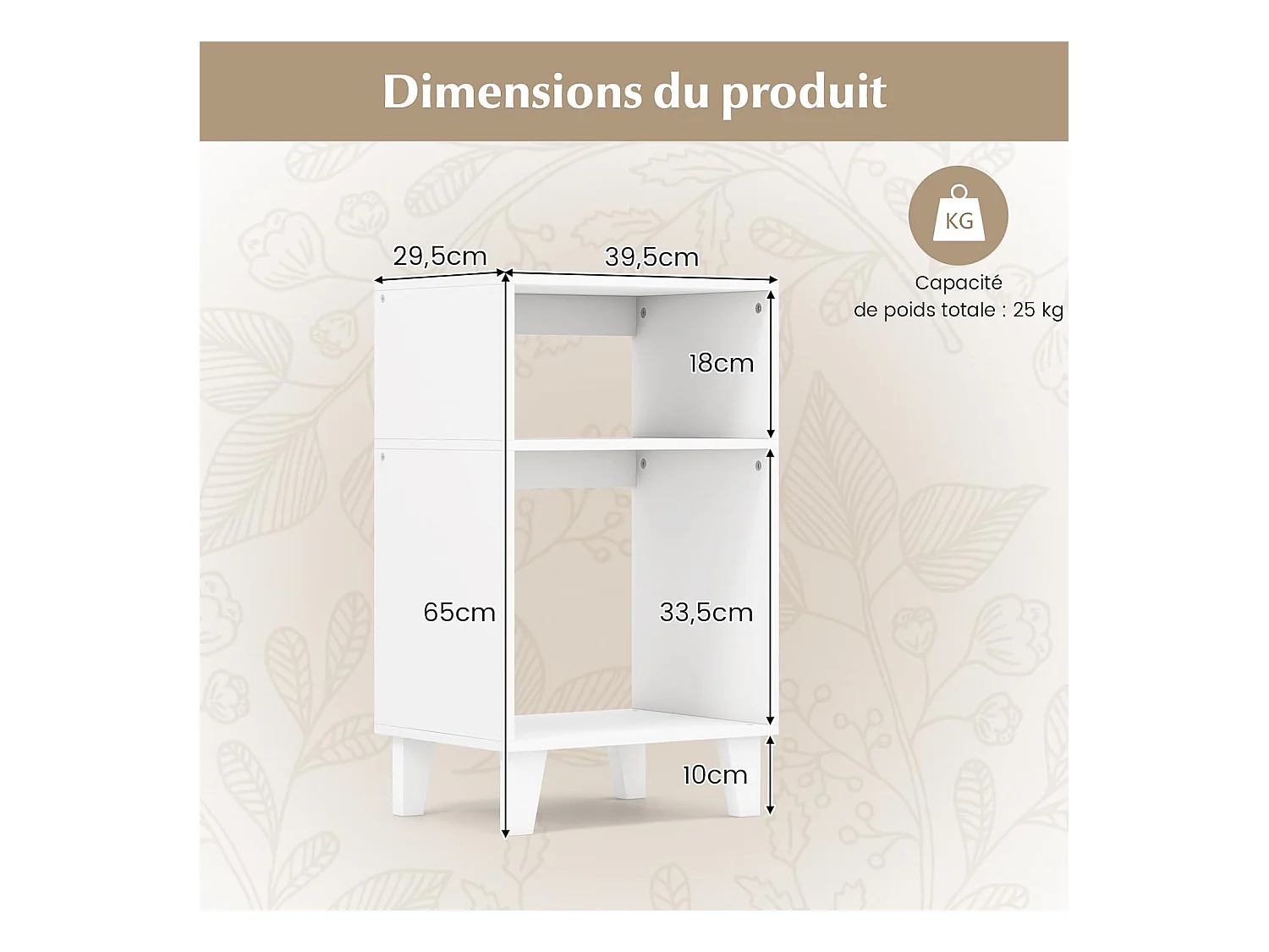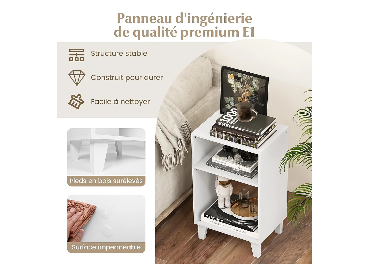 Table d'appoint 3 étagères, bout de canapé 4 pieds surélevés,39,5 x 29,5 x 65 cm