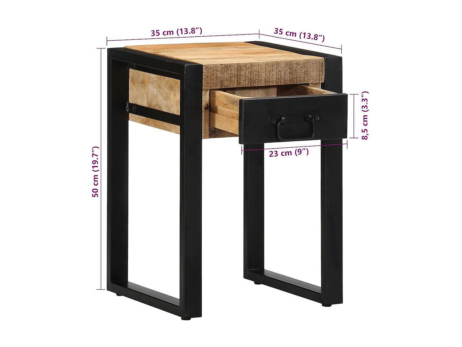 Table d’appoint 35x35x45 cm bois massif d'acacia et fer