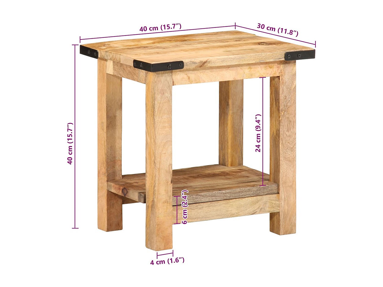 Table d'appoint 40x30x40 cm bois massif de manguier brut
