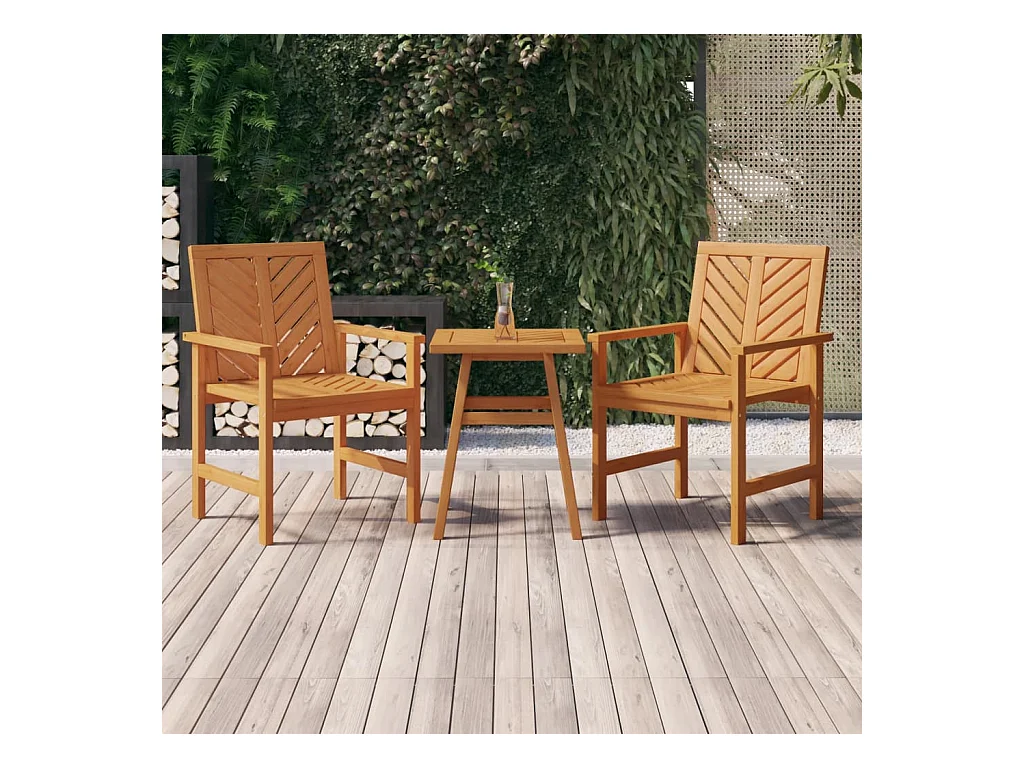 Set de 2 chaises pliantes et 1 table de balcon rabattable avec rangement en bois massif PRADO