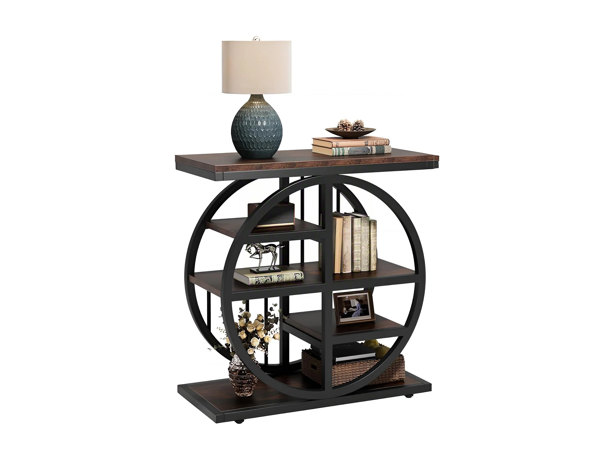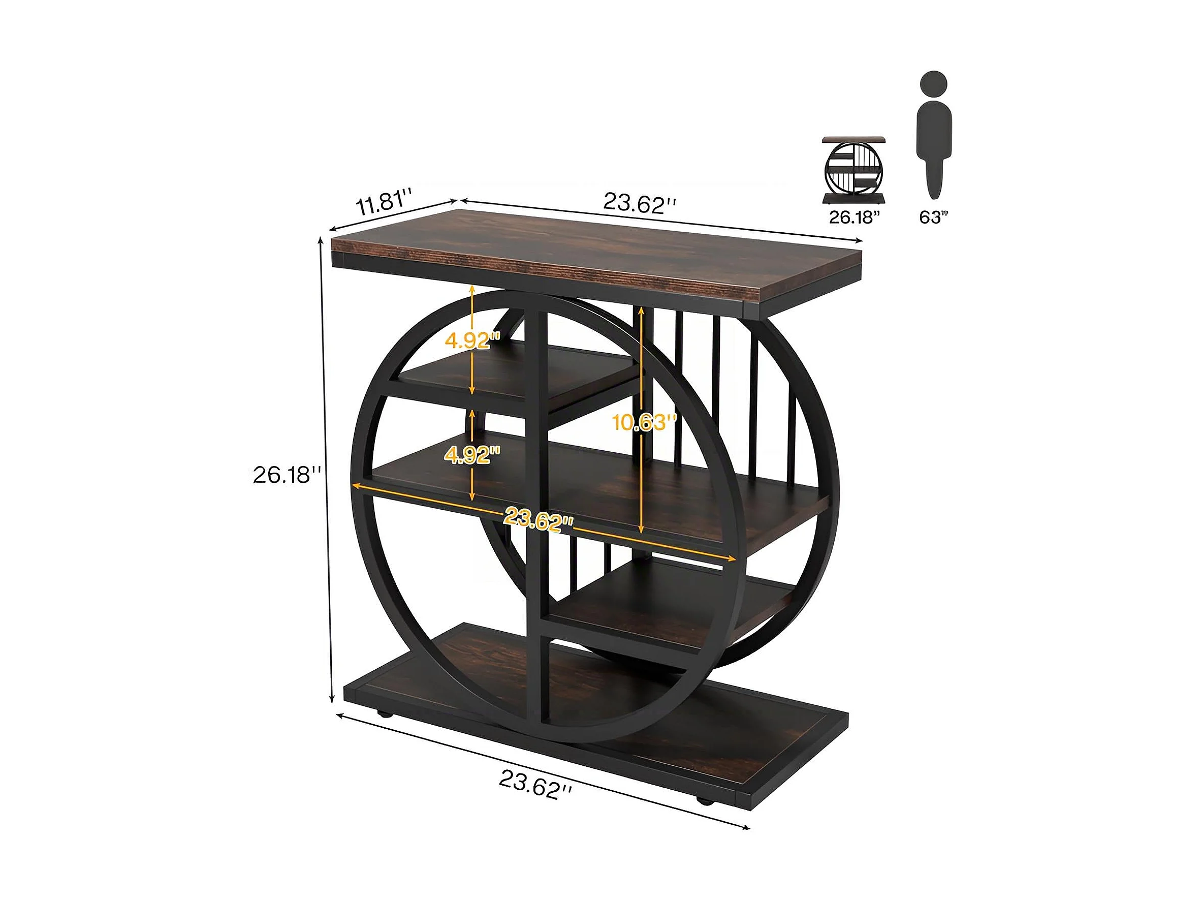 Table d'appoint 5 Étagères Étroite 60x30 cm, Table Basse Industrielle en Métal et Bois pour Salon, Étagère de Rangement Étroite, Table de Chevet pour Chambre
