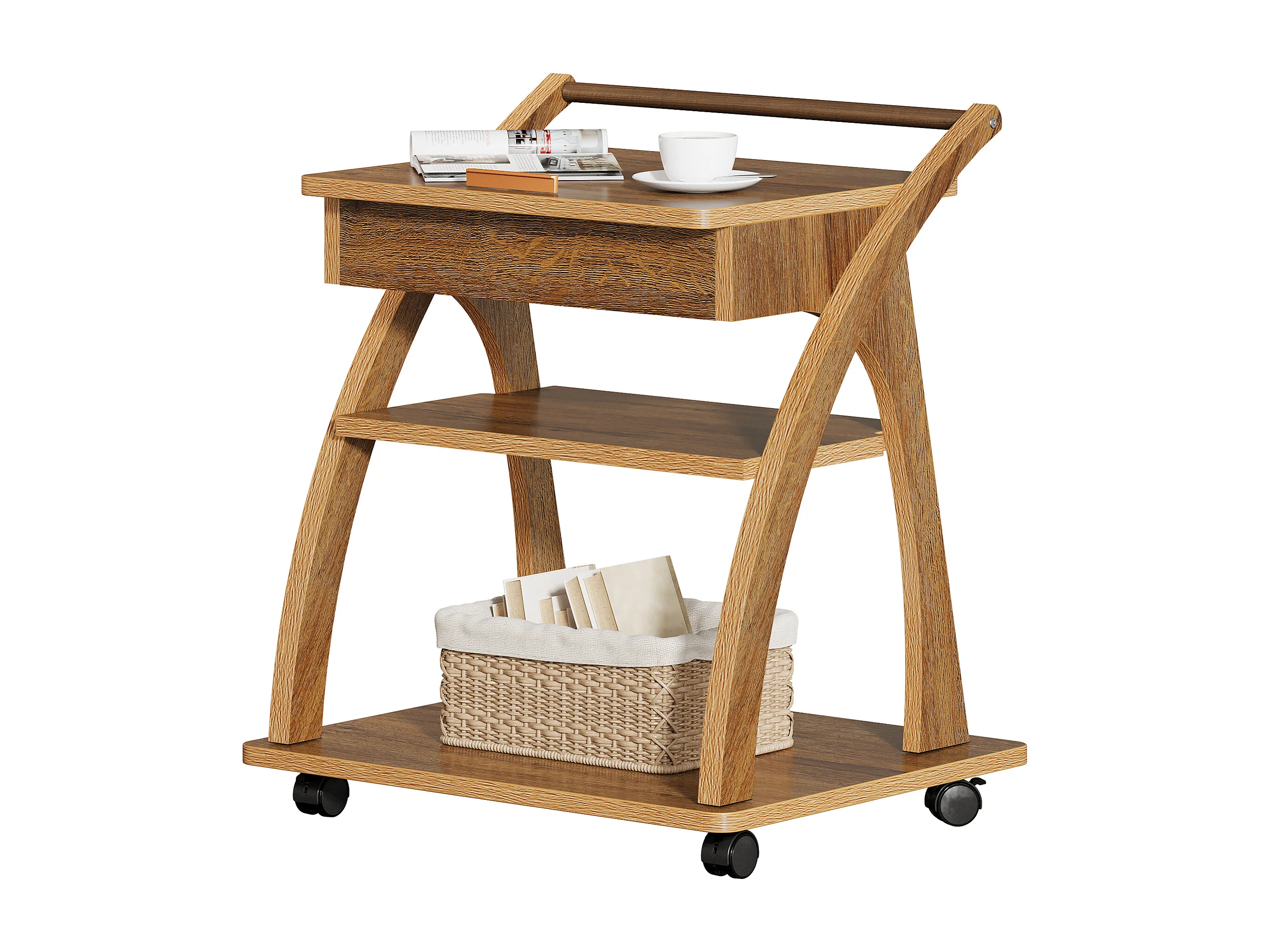 Table d'appoint à roulettes, table basse à 3 niveaux pour canapé avec plateau réglable, plateau TV roulant pour petits espaces
