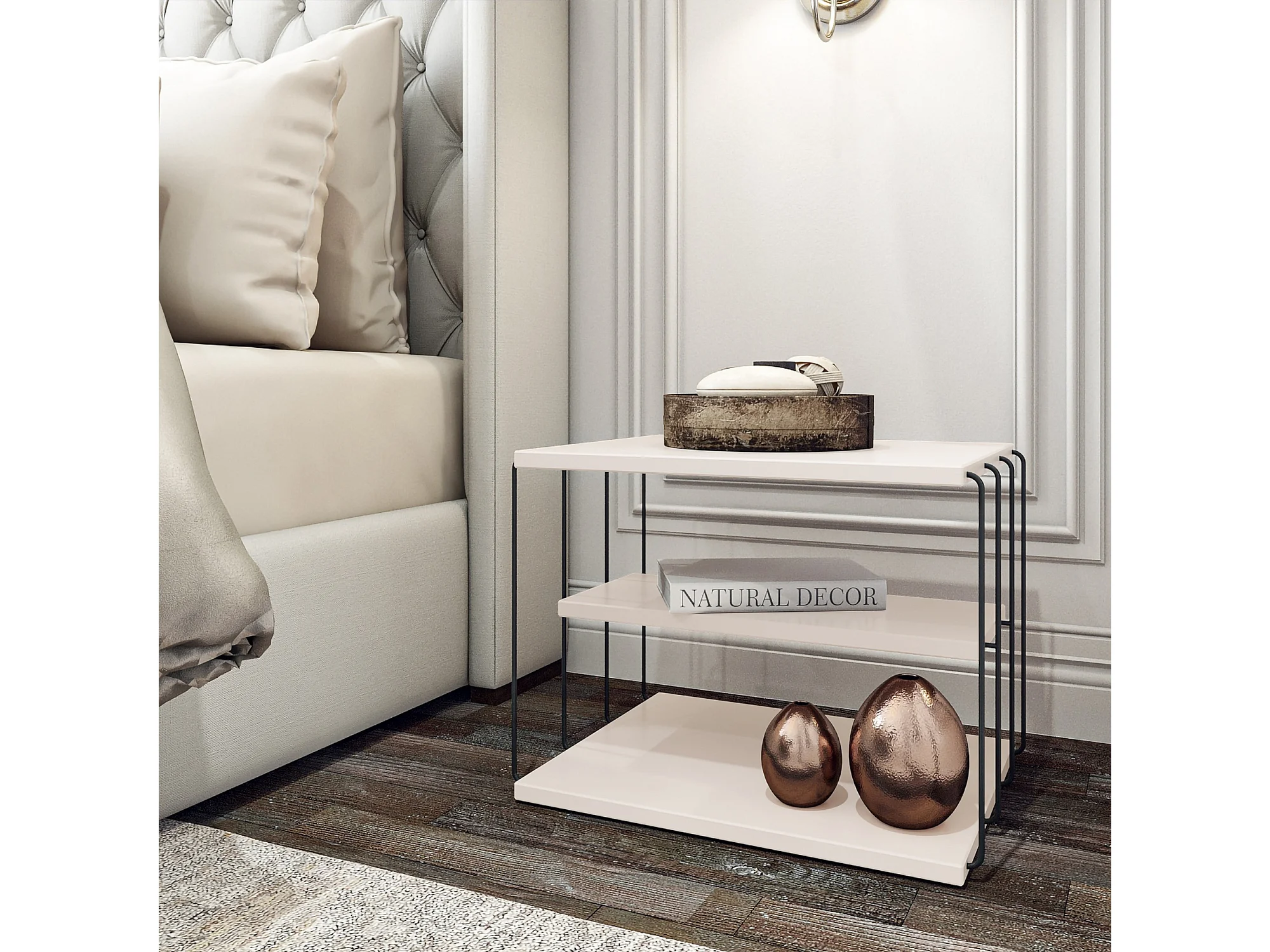 Table d'appoint Åtvidaberg avec 2 étagères panneau de particules métal 50 x 40 x 33 cm blanc noir [en.casa]