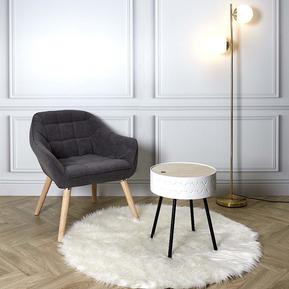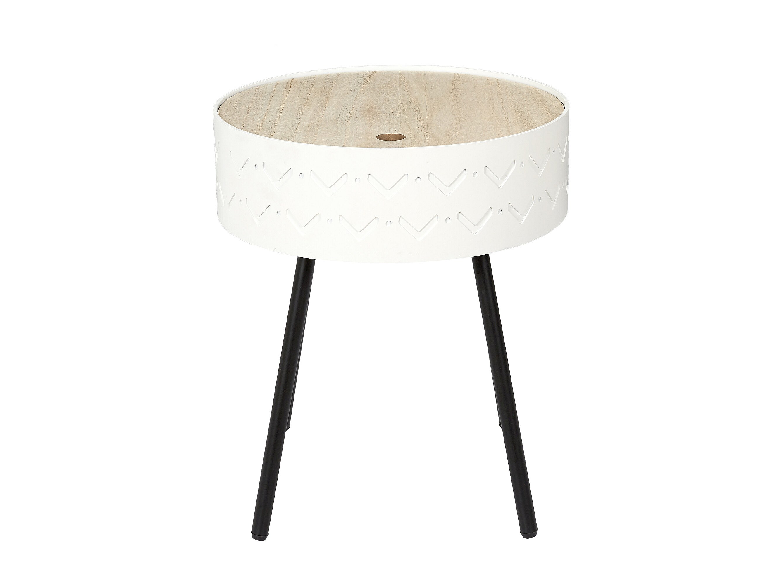 Table à café en métal blanc et plateau en Bois H 30.5 cm