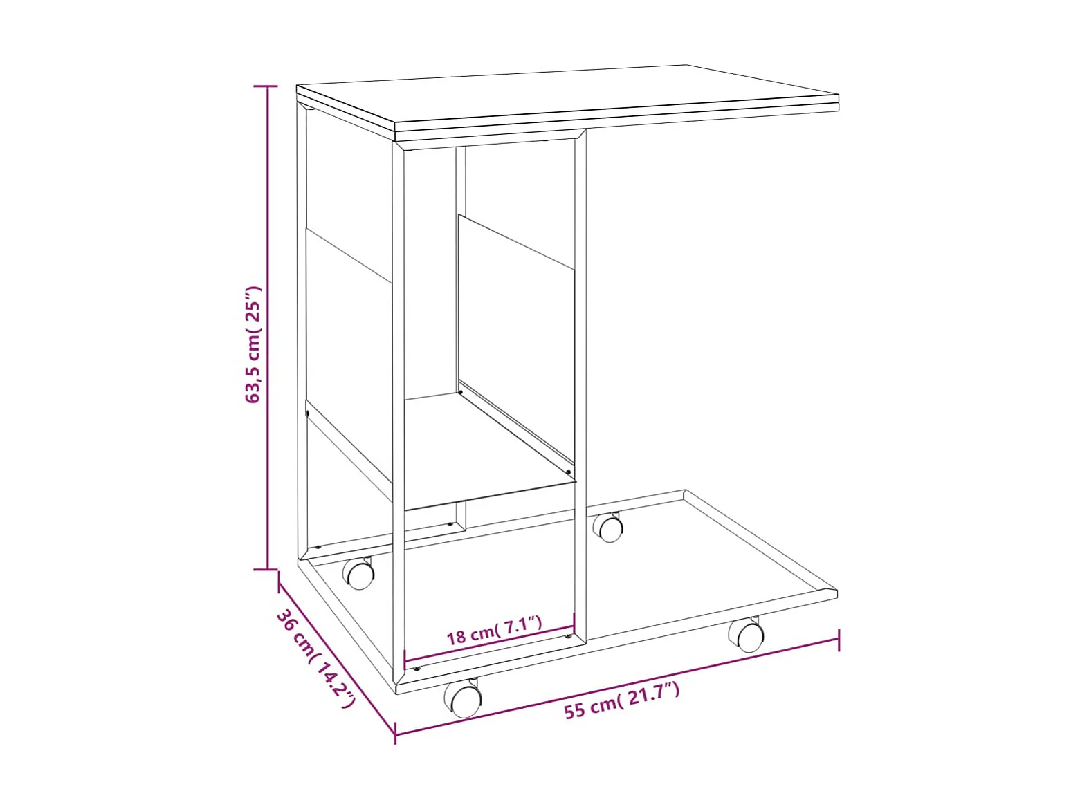 Table d'appoint avec roues Noir 55x36x63,5 Bois d'ingénierie