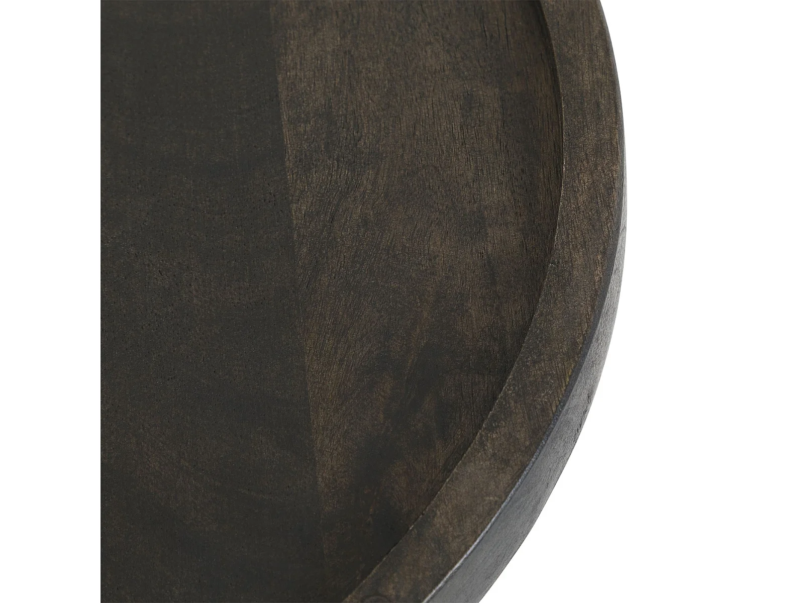 Table d'appoint BEJAH 55 cm Ronde, En Bois Massif Brun avec Socle en Marbre Blanc, Bout de Canapé pour Salon Design Cannelé