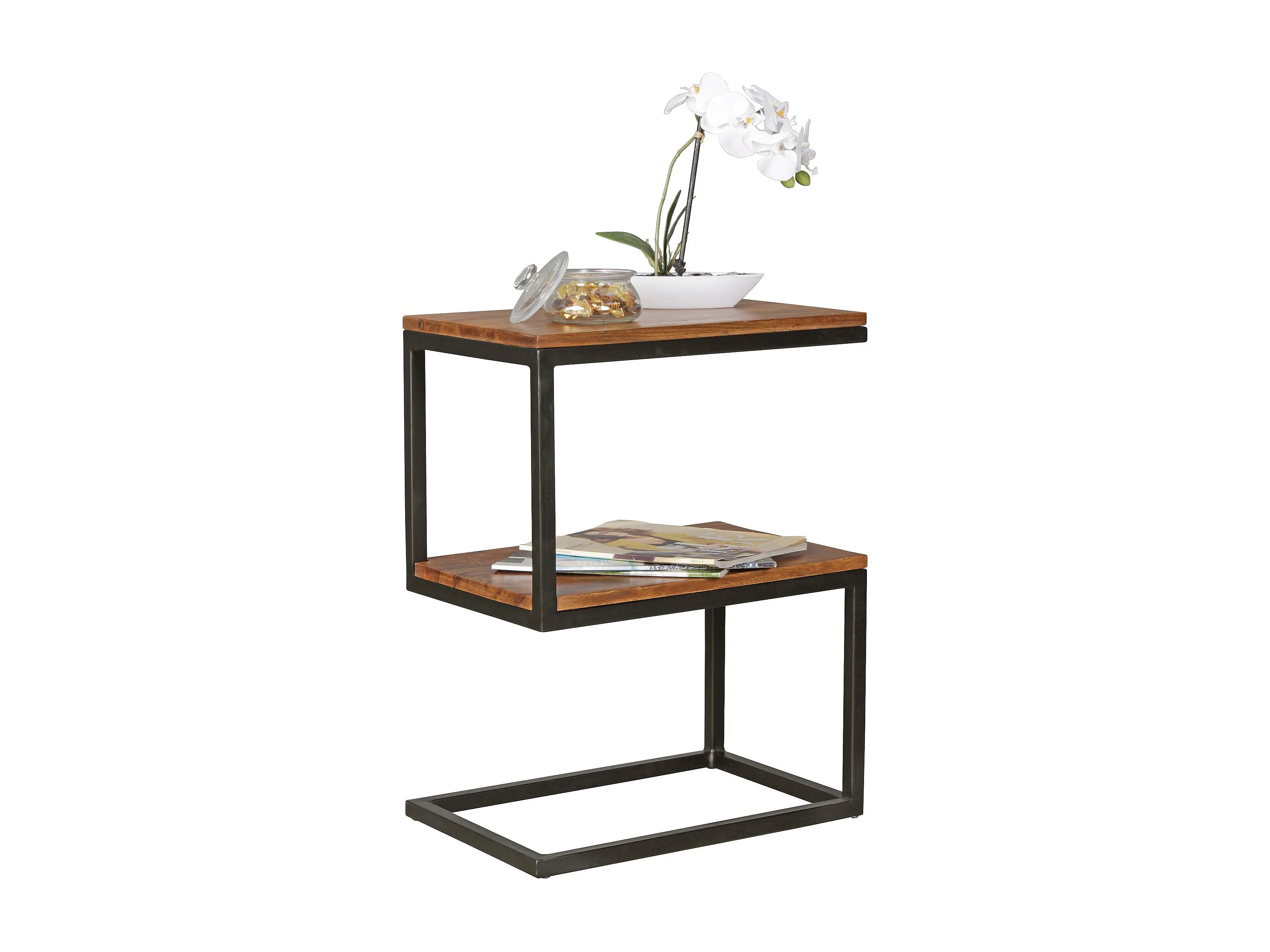 Bout de canapé en bois coloris naturel foncé et métal coloris noir - longueur 45 x Profondeur 35 x Hauteur 66 cm