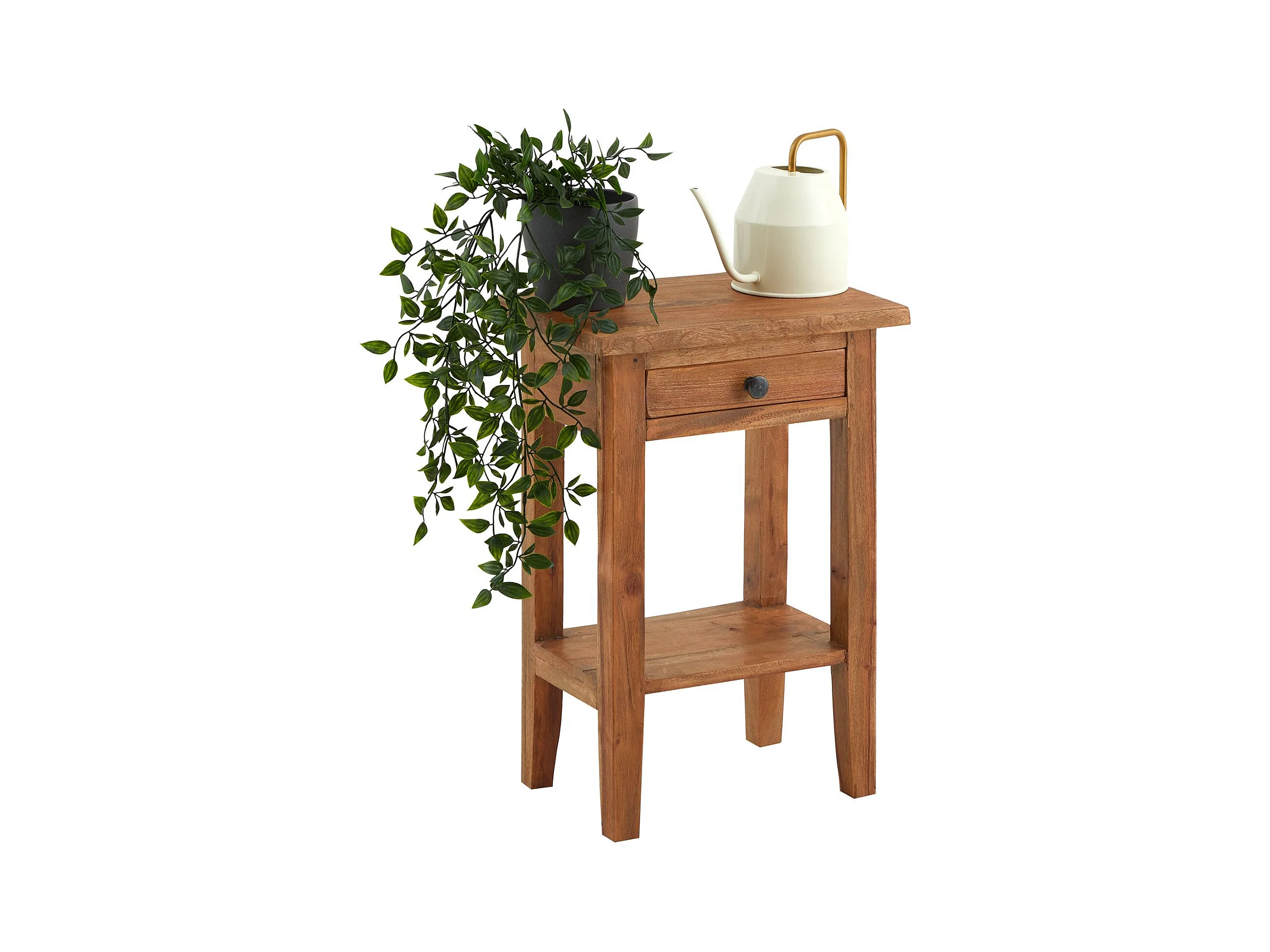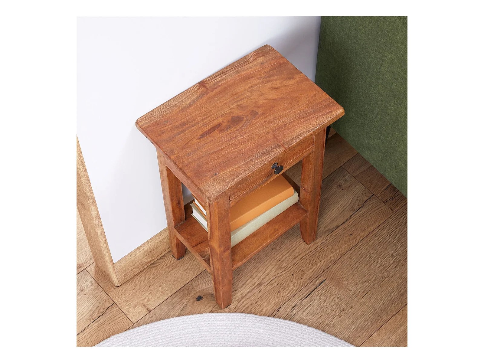 Table d'appoint BOSSONS L 51 cm en acajou coloris naturel, petit meuble avec 1 tiroir et 1 étagère