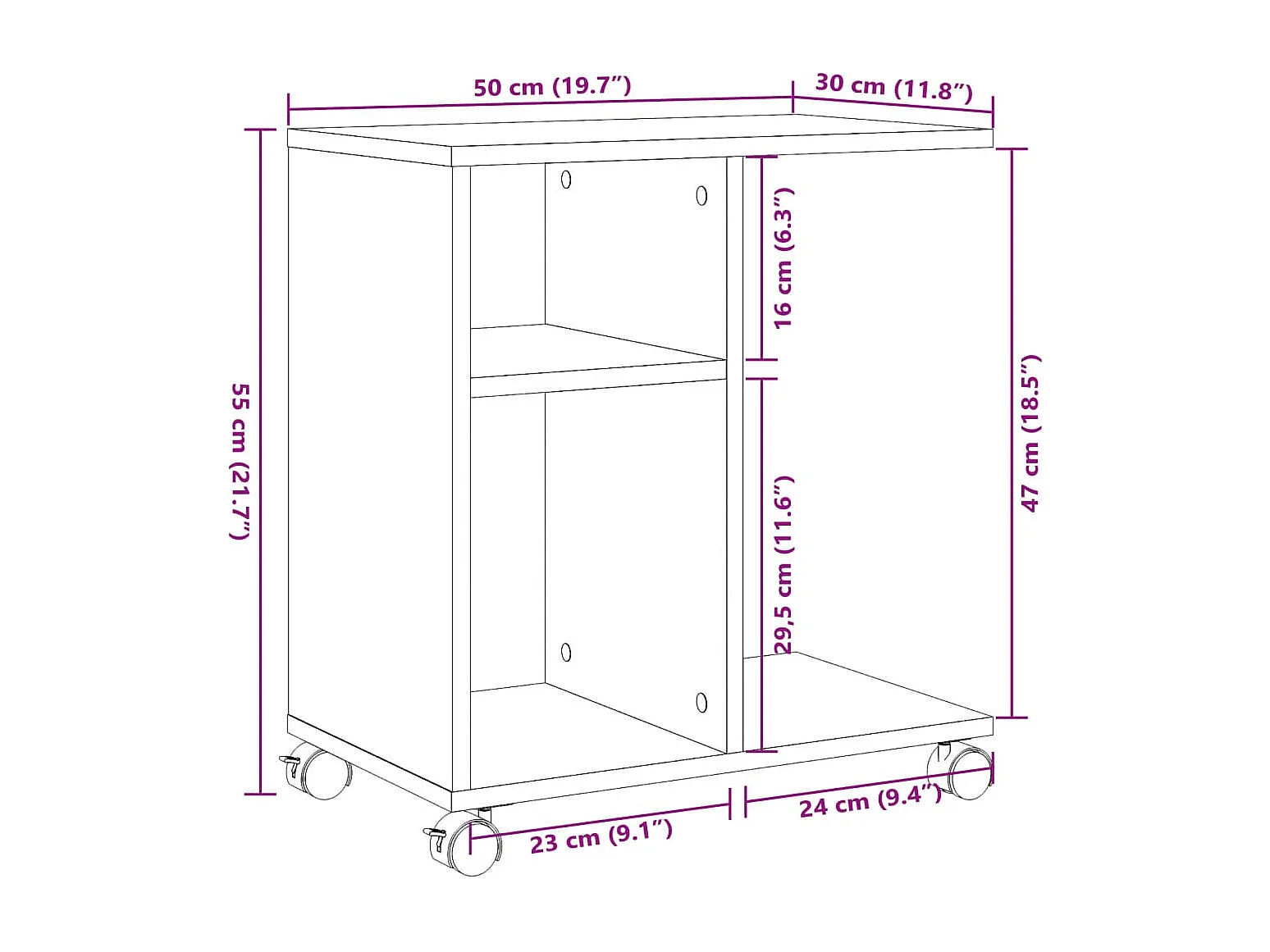 Table d'appoint sur roulettes bois marron 50 x 30 x 55 cm DEC032332