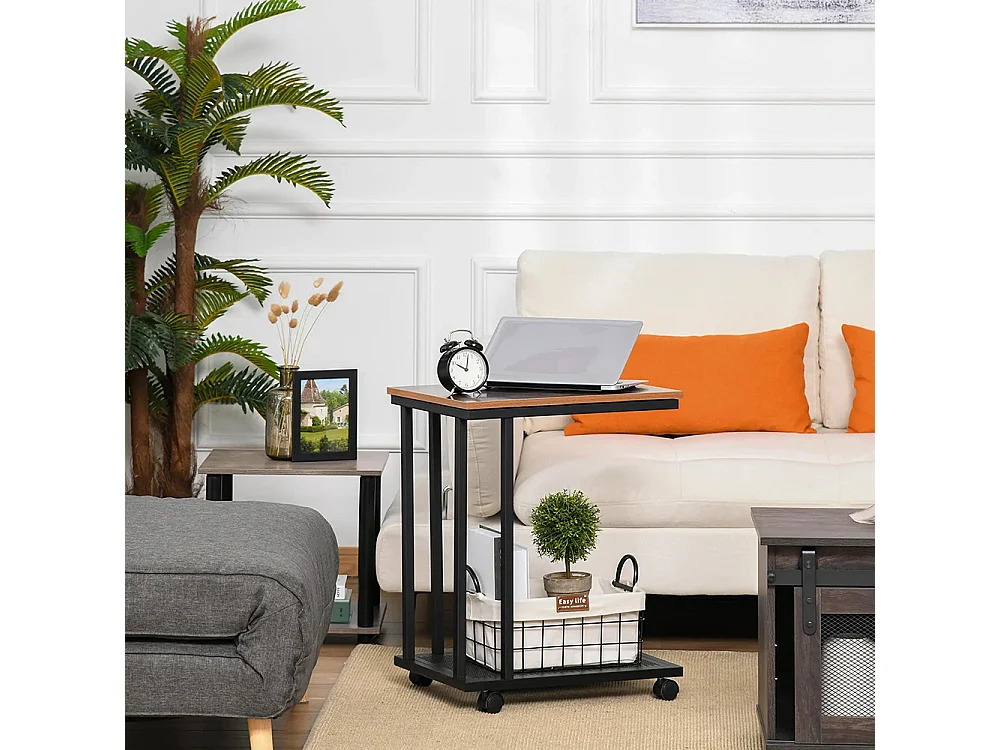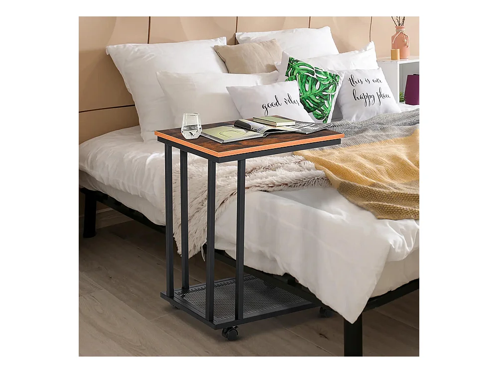 Table d'appoint, Bout de canapé, Table de lit mobile roulante ,avec cadre en acier Coloris boisé