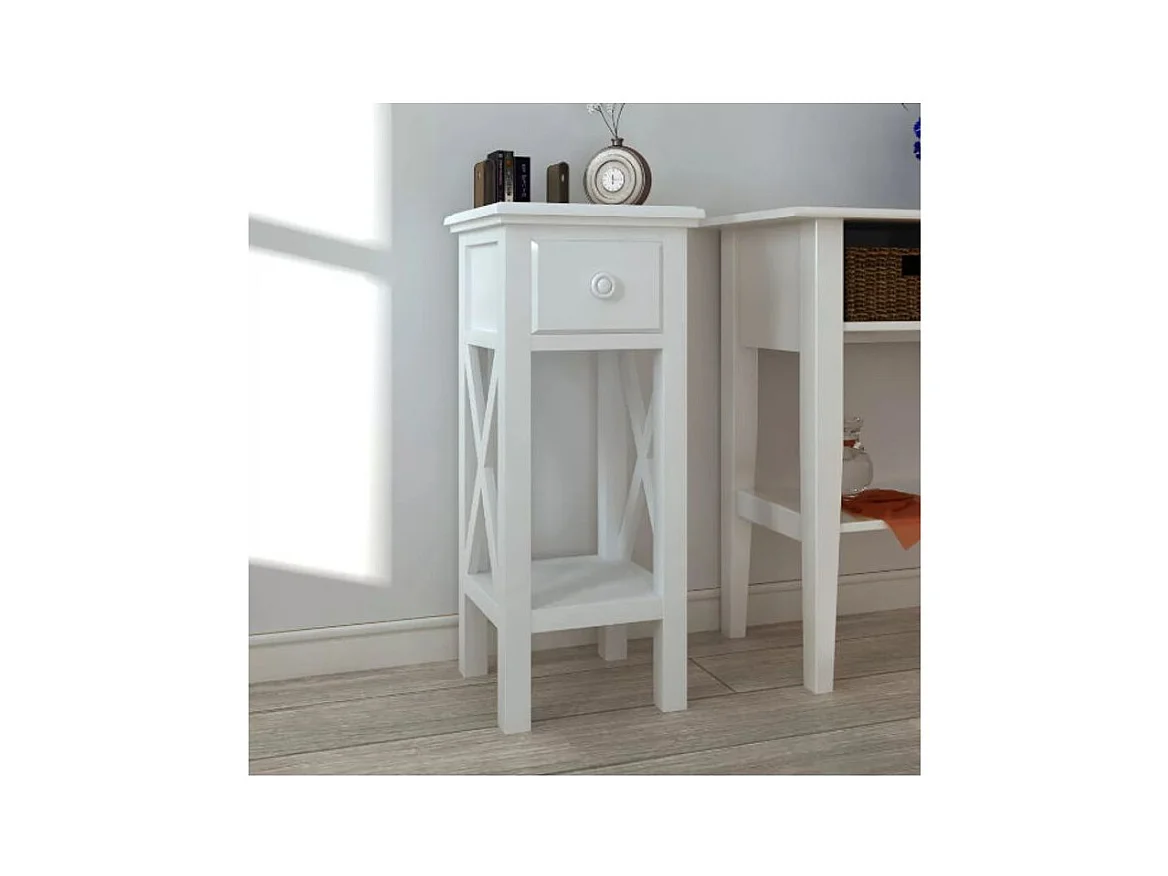 Table d'appoint carrée 1 tiroir bois et pin massif blanc Cosa