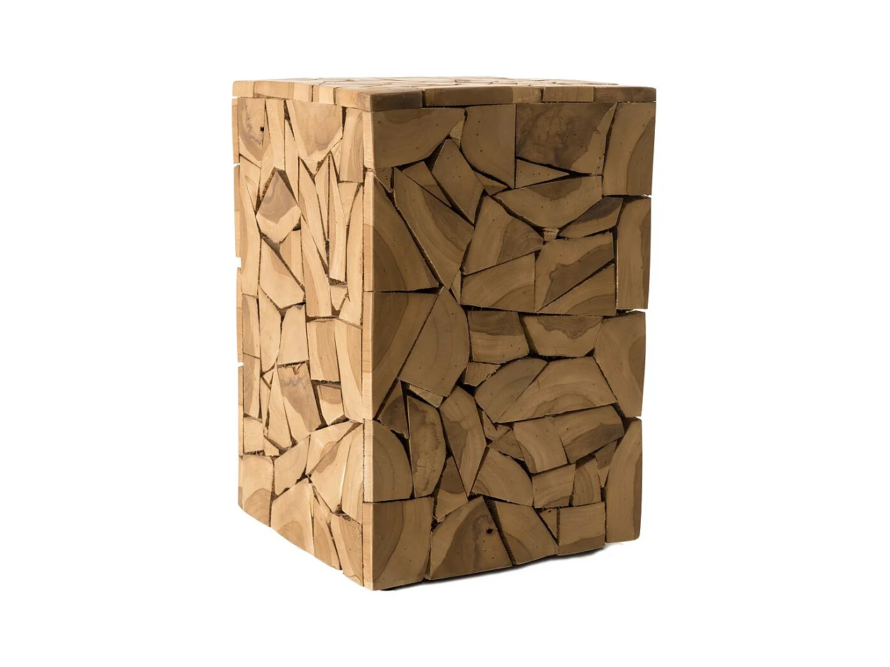 SAM - Table d'appoint marron carrée 30x30cm mosaïque bois Teck