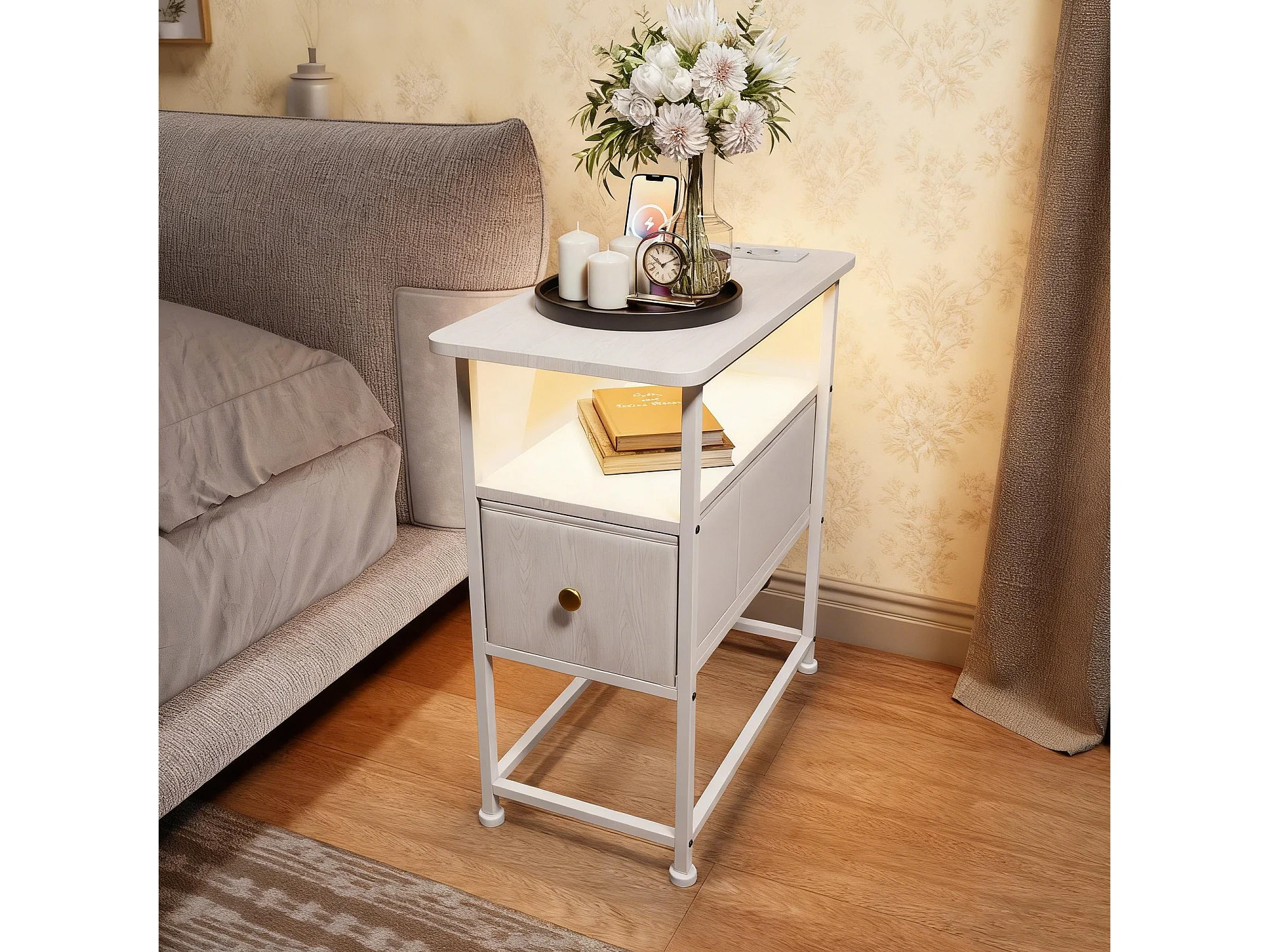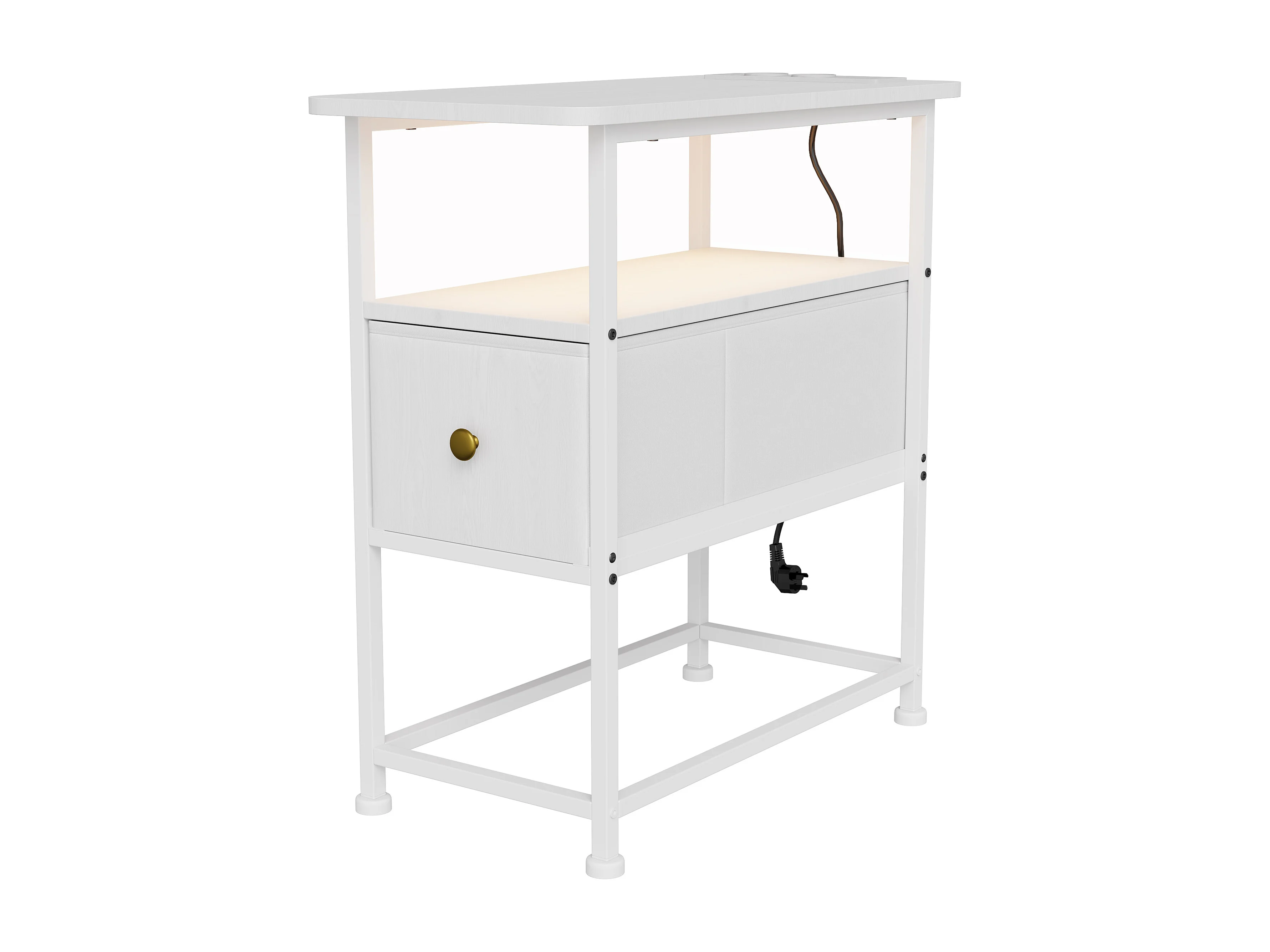 Table d'appoint carrée - table de chevet petite taille - avec Éclairage LED et USB - 1 tiroir et 2 étagères - style moderne - 62x60x30 cm - blanc