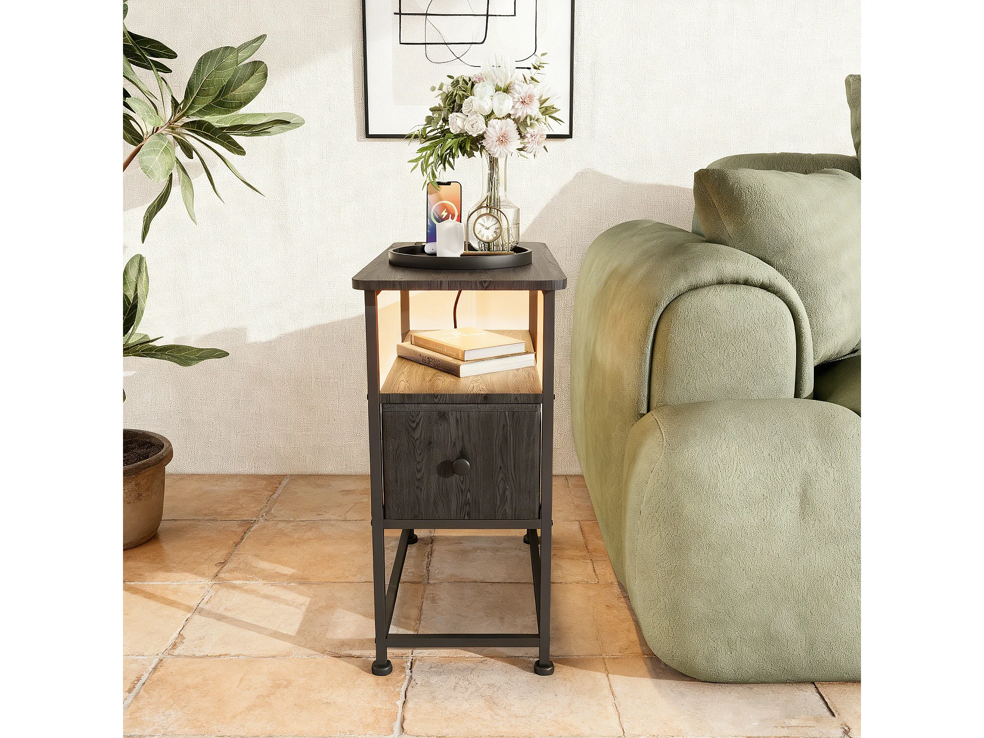 Table d'appoint carrée - table de chevet petite taille - avec Éclairage LED et USB - 1 tiroir et 2 étagères - style moderne - 62x60x30 cm - noir