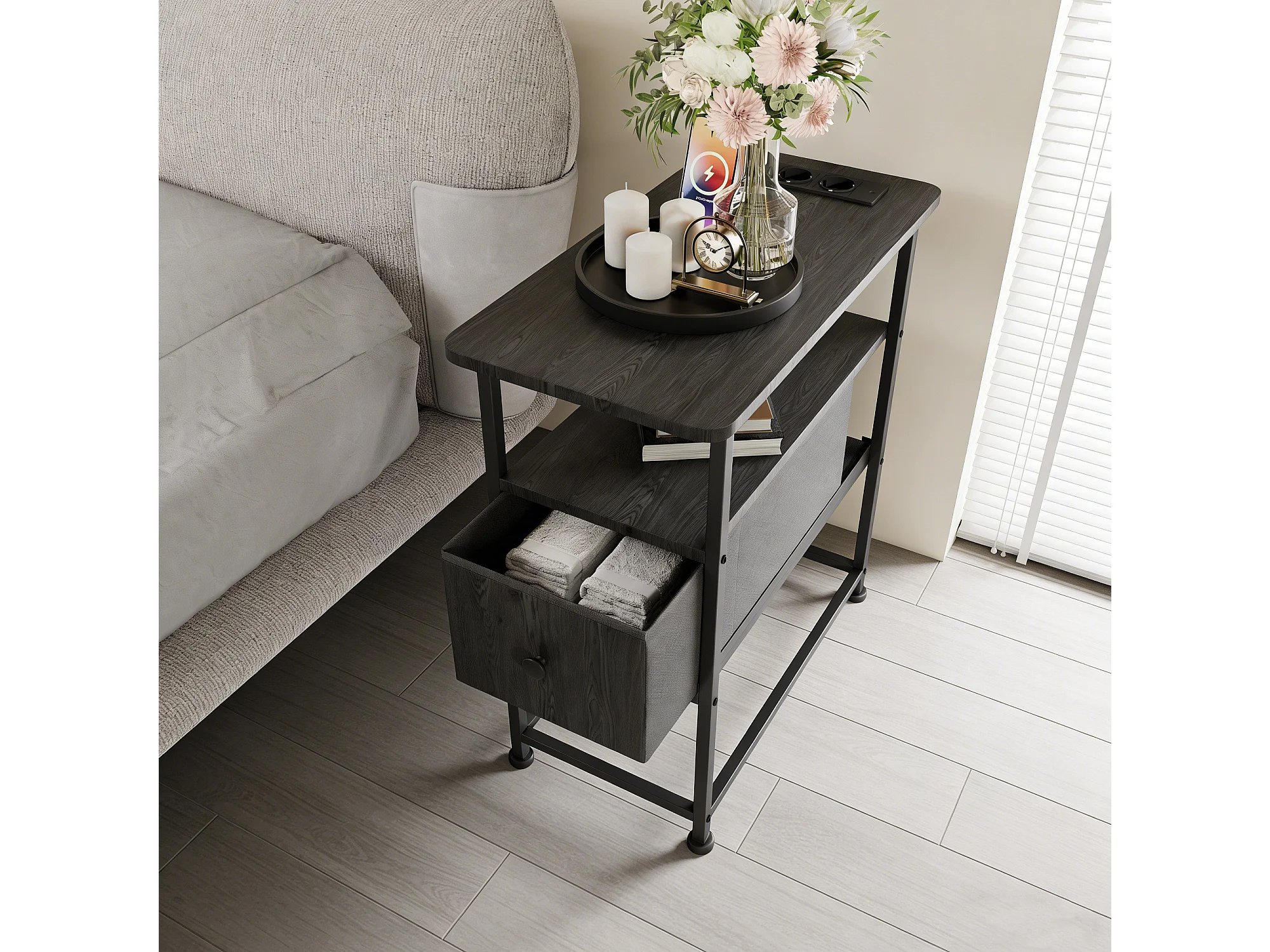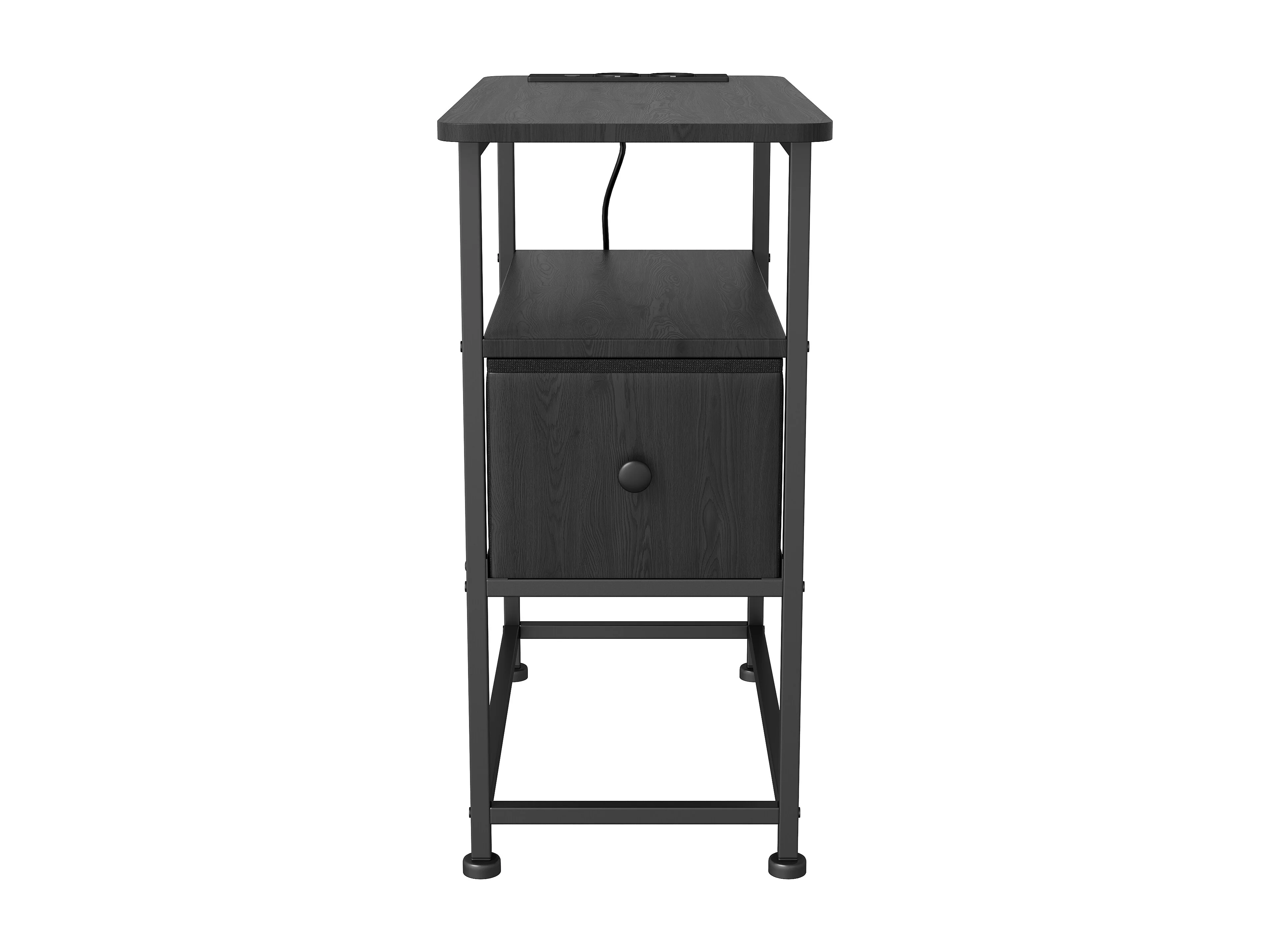 Table d'appoint carrée - table de chevet petite taille -USB - 1 tiroir et 2 étagères - style moderne - 62x60x30 cm - noir