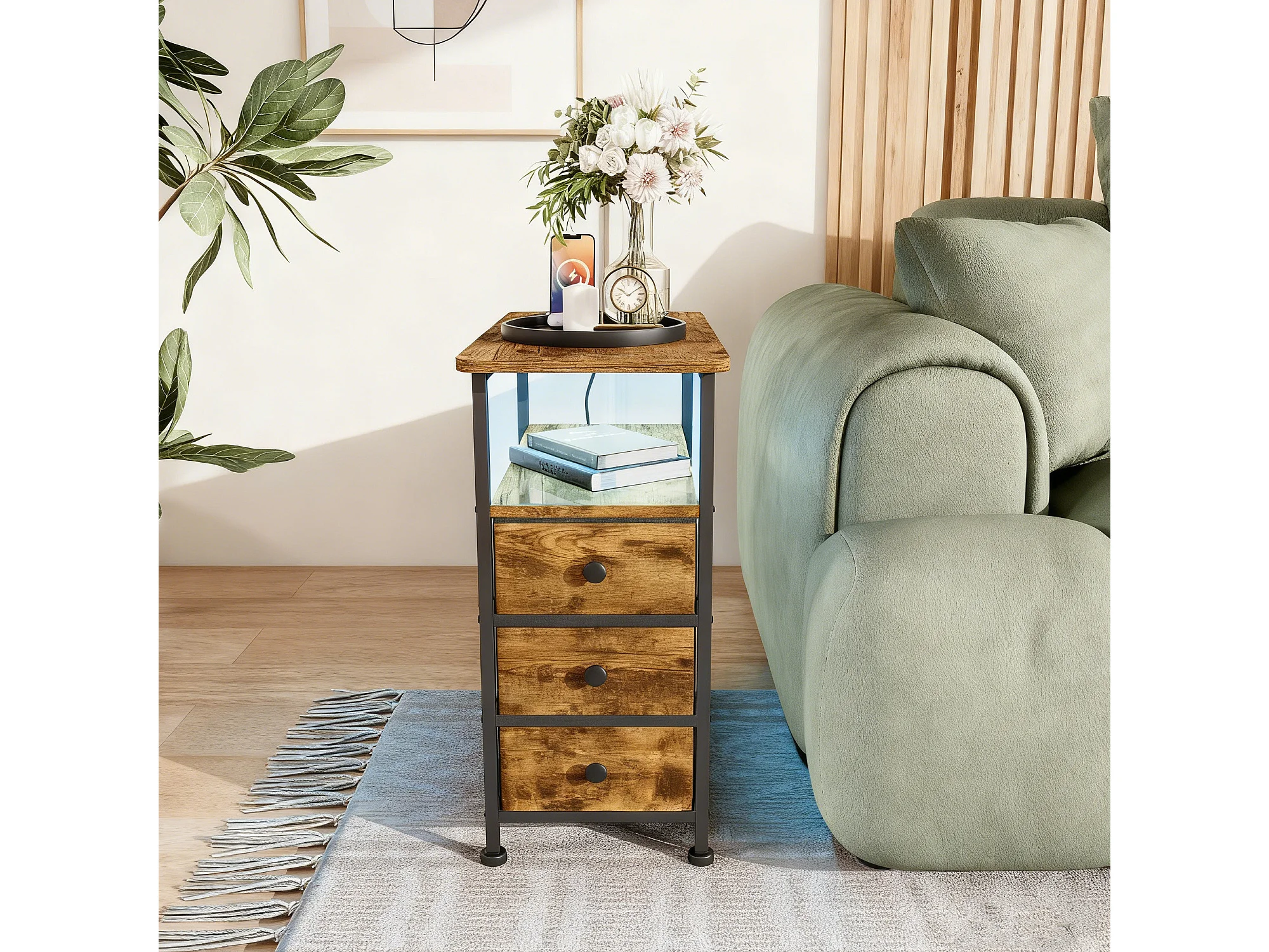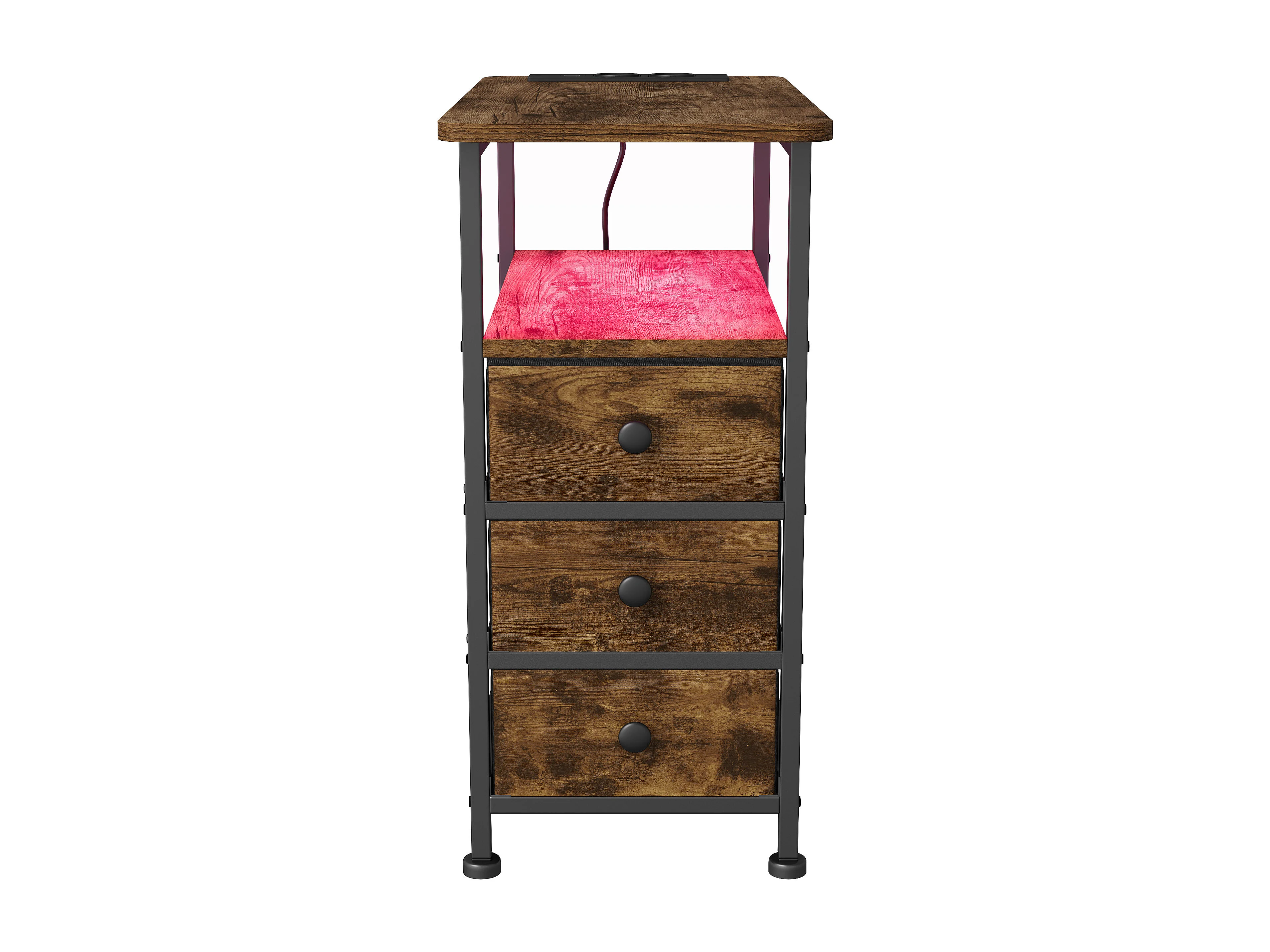 Table d'appoint carrée, table de chevet -Table d'appoint avec Éclairage LED et USB, 3 tiroir et 2 étagères, Style Industriel, pour salon chambre, Brun