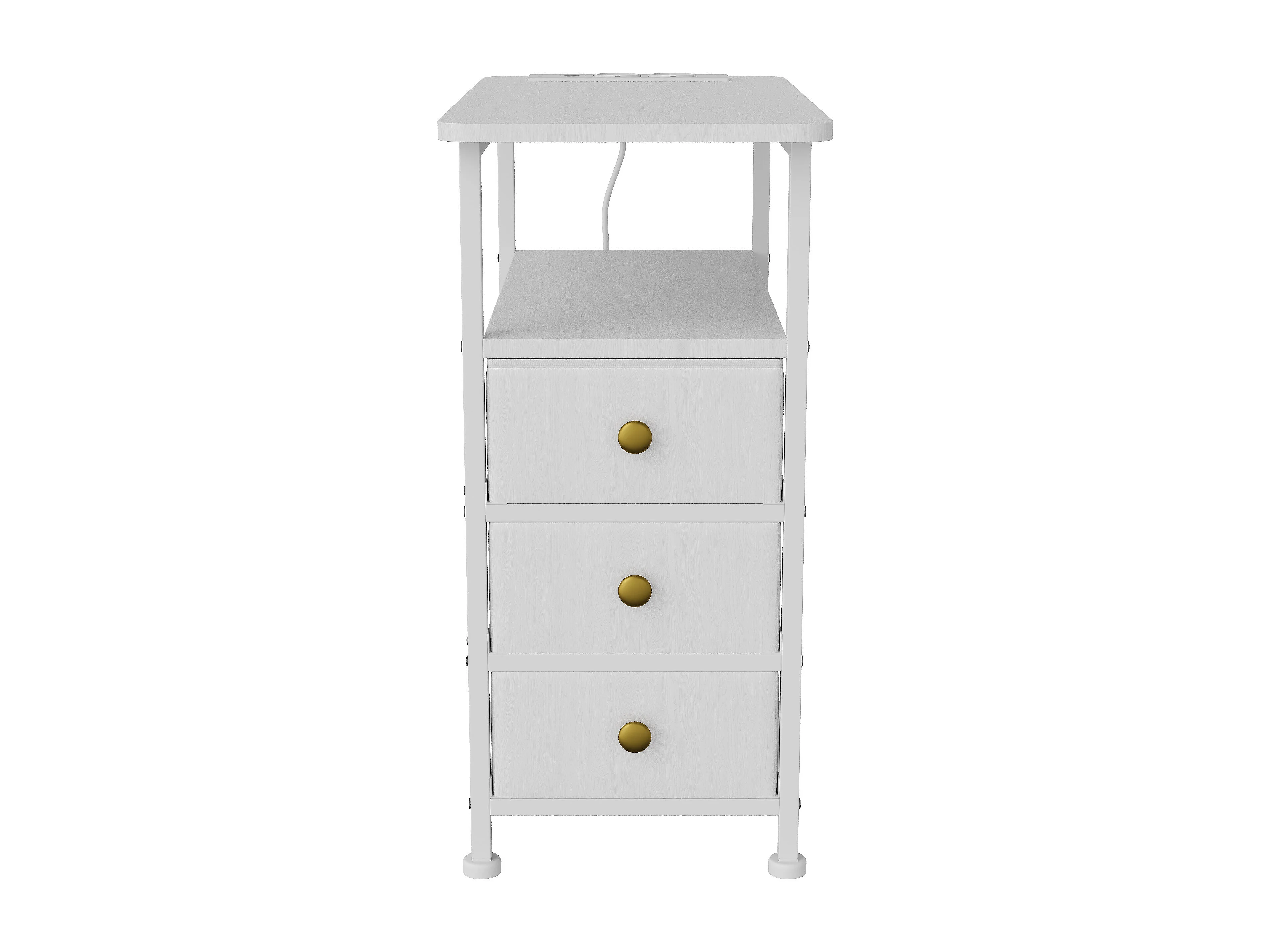 Table d'appoint carrée, table de chevet -Table d'appoint avec USB, 3 tiroir et 2 étagères, style moderne, 62x60x30 cm, blanc