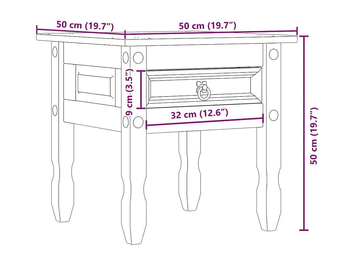 Table d'appoint Corona 50x50x50 cm bois de pin massif