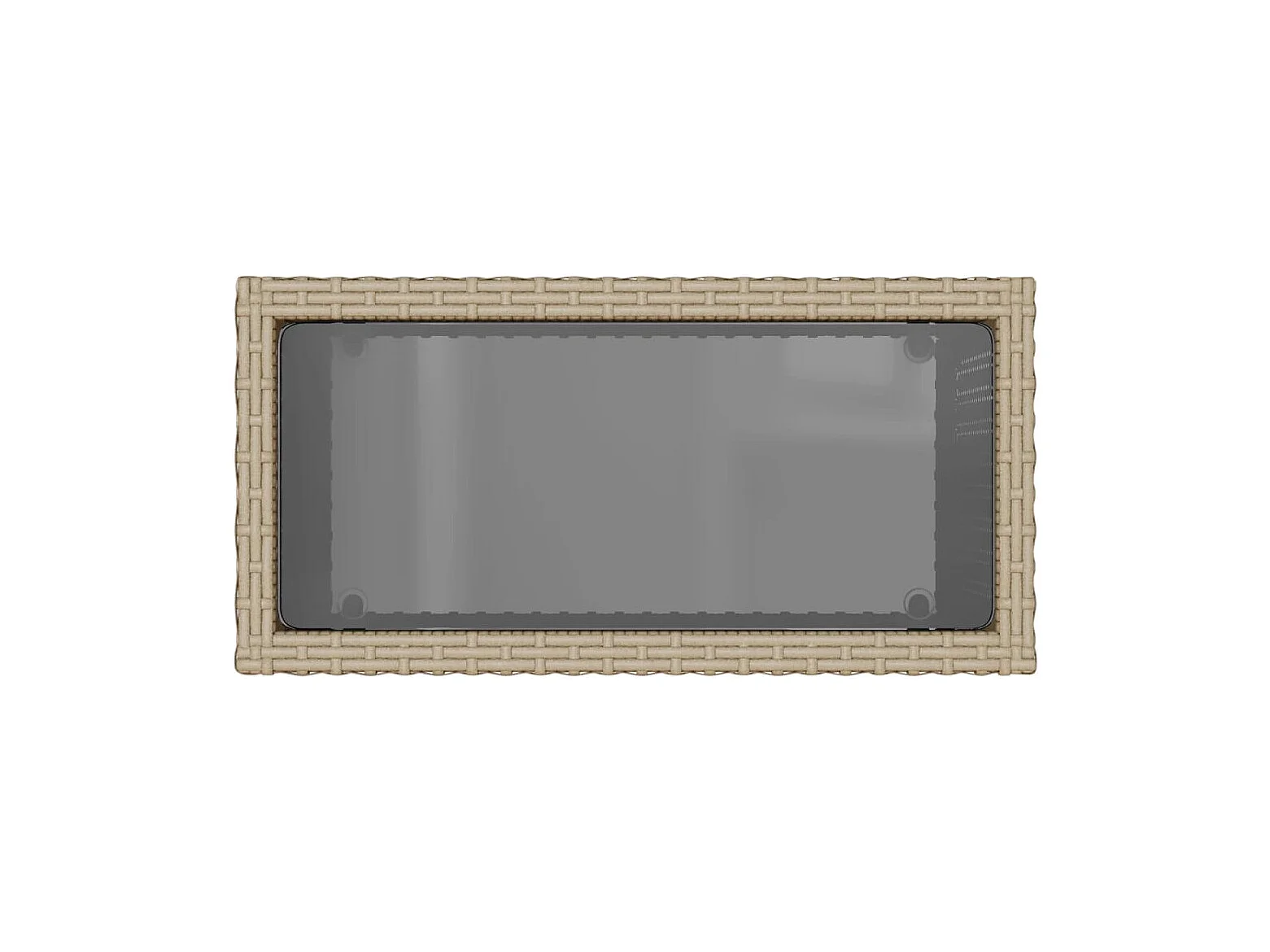 Table d'appoint de jardin avec dessus en verre beige rotin