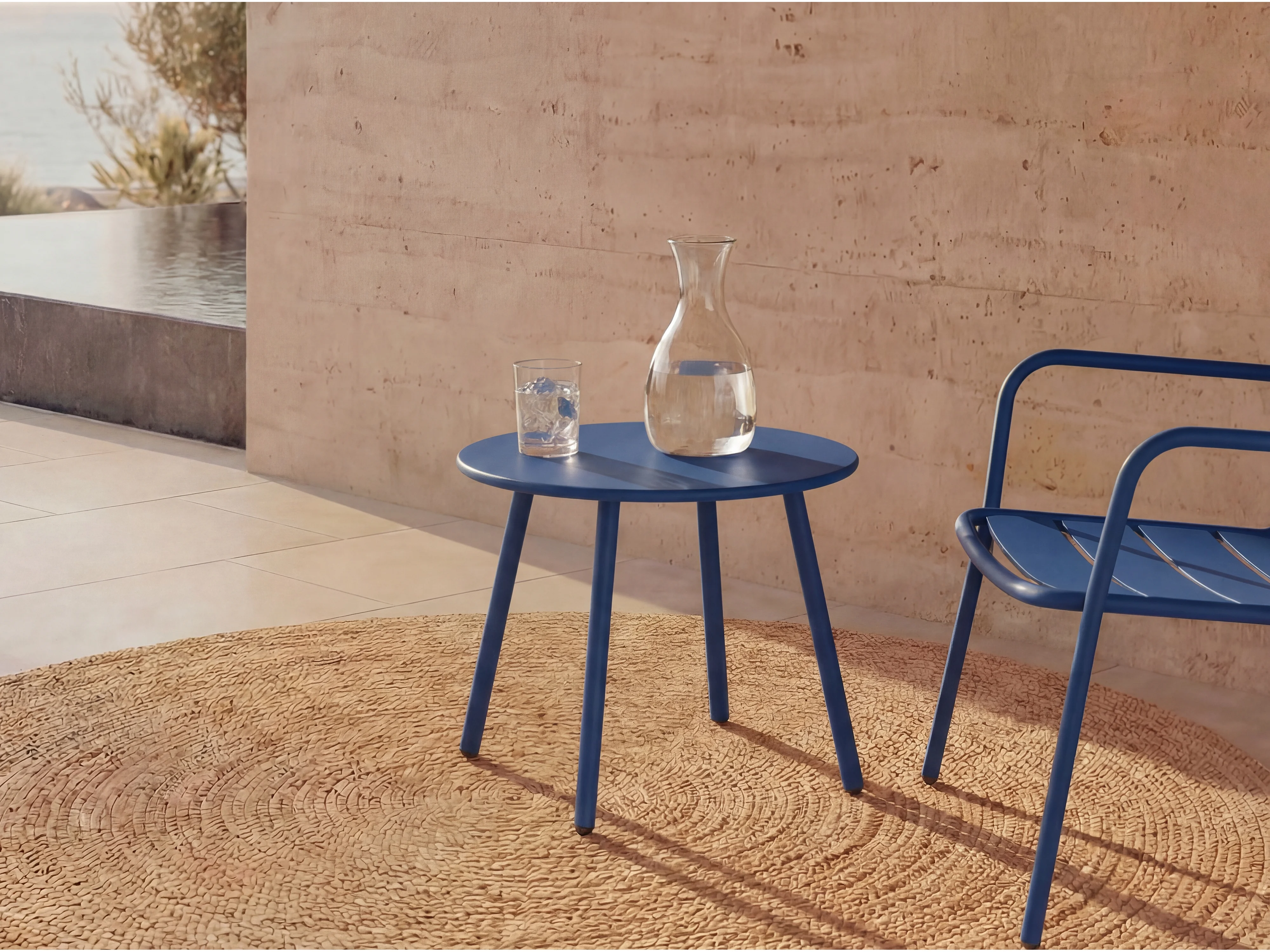 Table d'appoint de jardin en métal ronde - Bleu nuit - MIRMANDE de MYLIA