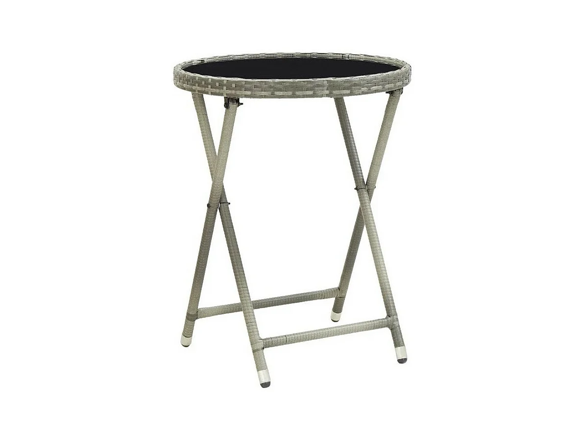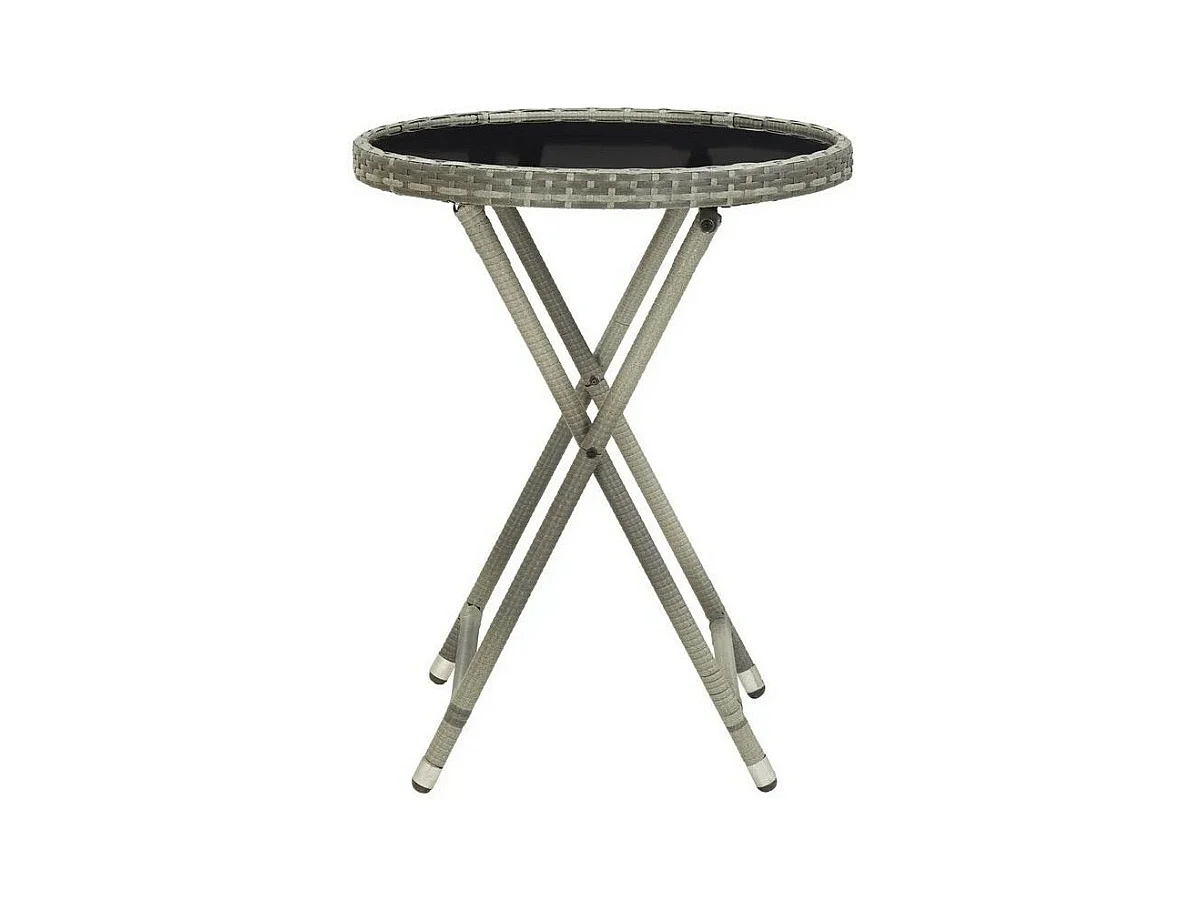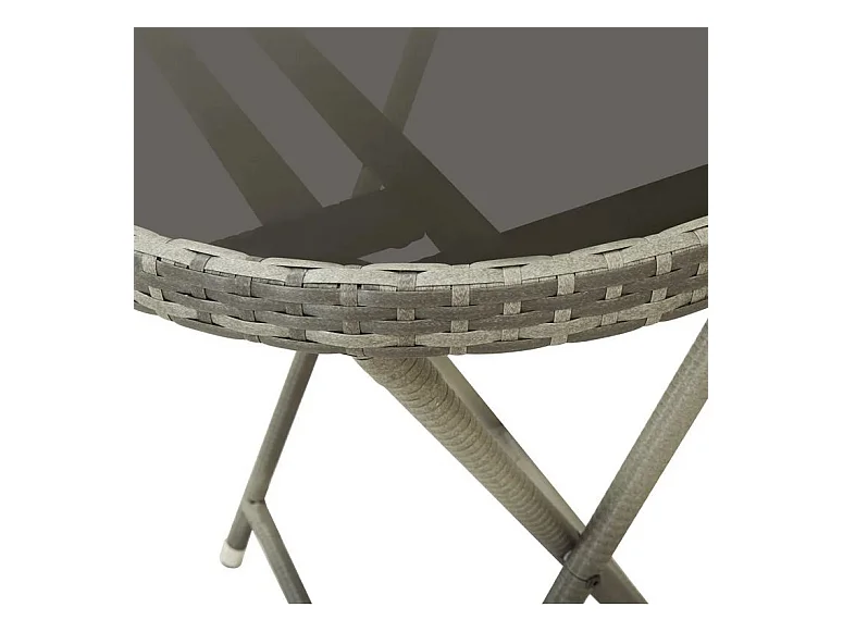 Table de jardin Ø80x75 Verre trempé-résine tressée Gris