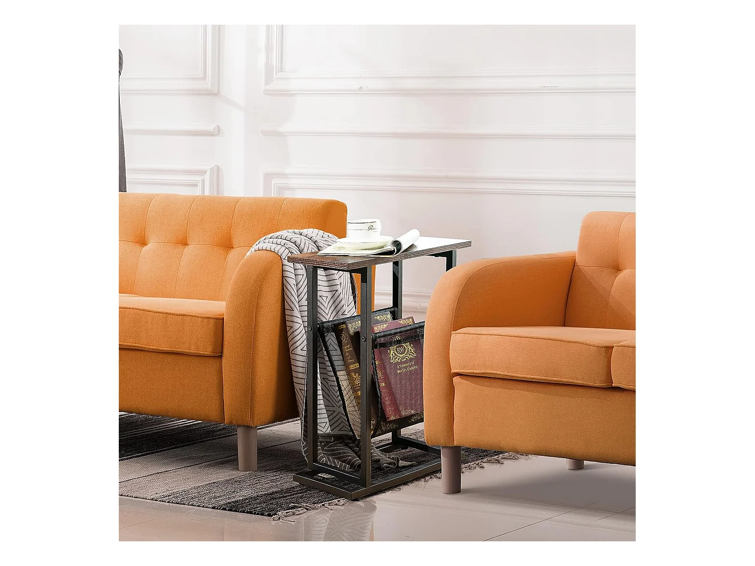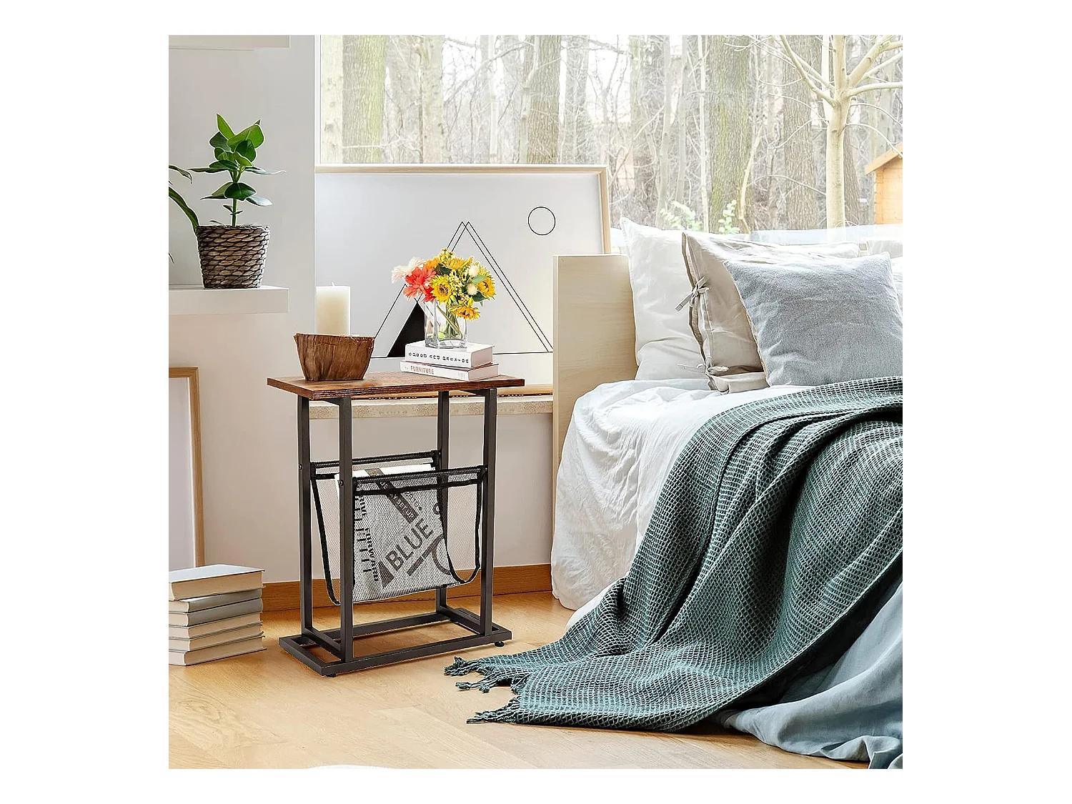 Table d'appoint de style industriel, 2 niveaux avec porte-revues en maille, 48 x 18 x 54,5 cm