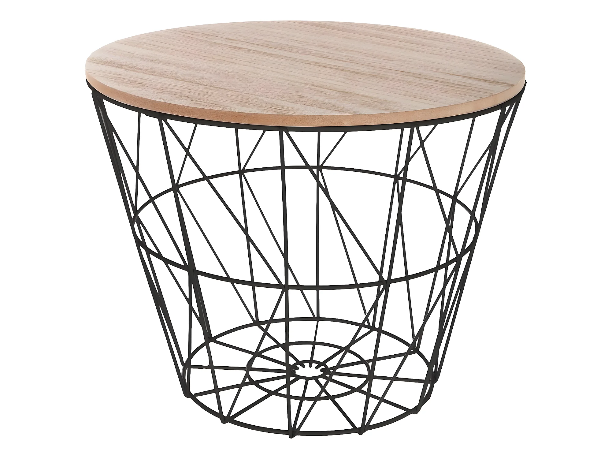 Table d'appoint design en MDF et métal noir - Dim : D.38 x H.30,5 cm