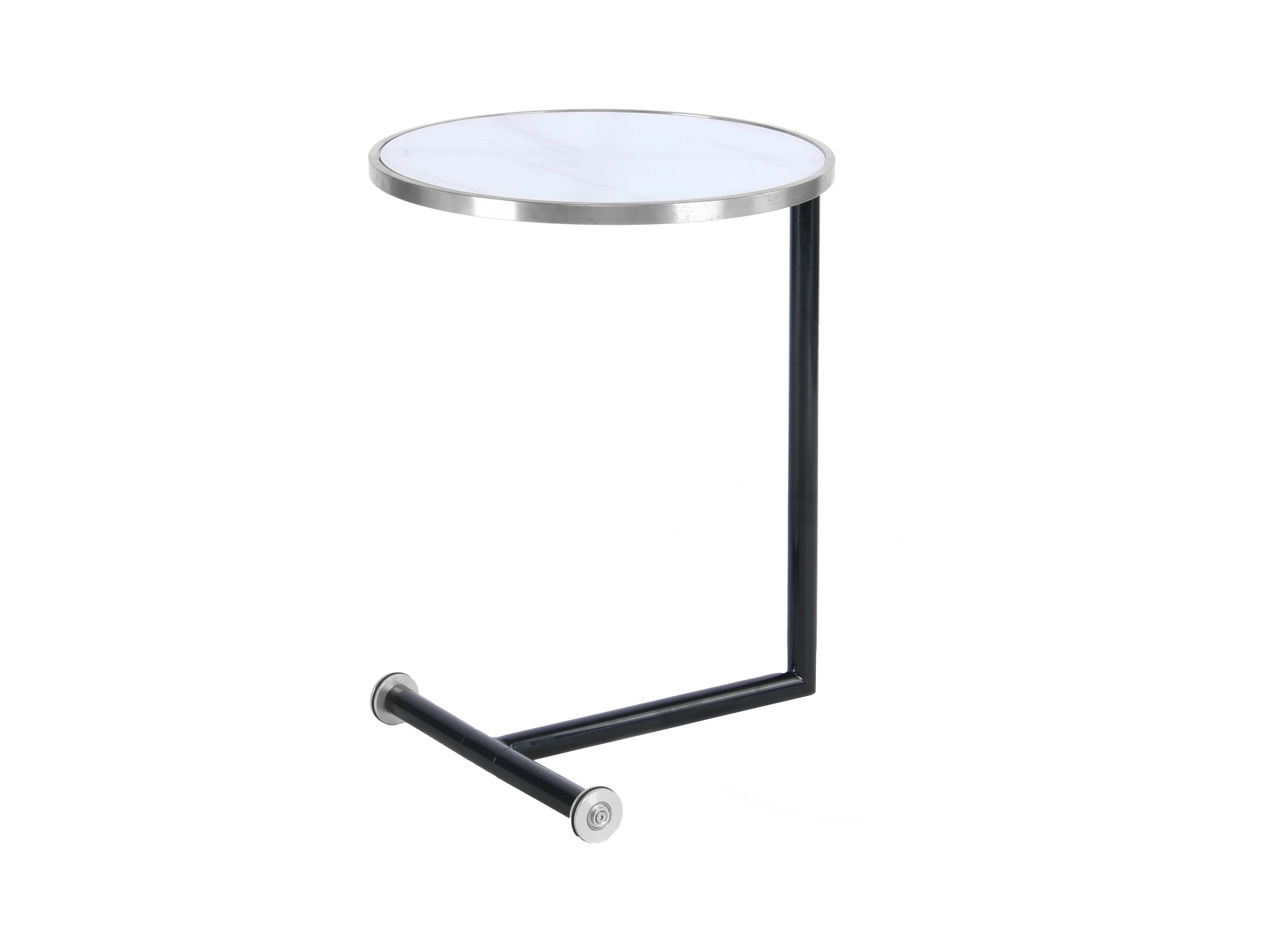 Table d'Appoint Design "Servant" 62cm Argent & Blanc