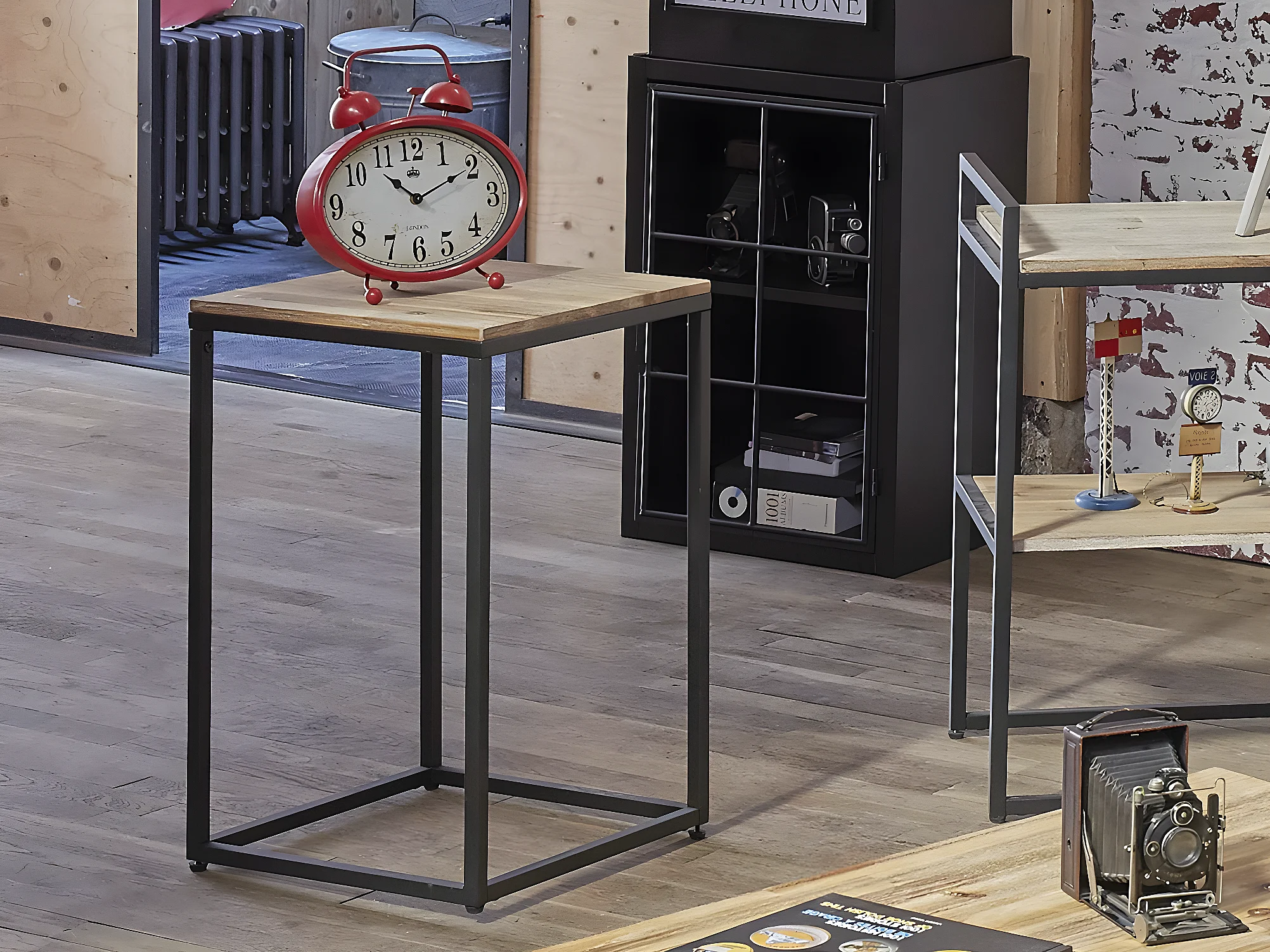 Table d'appoint en Bois d'Acacia et Métal noir