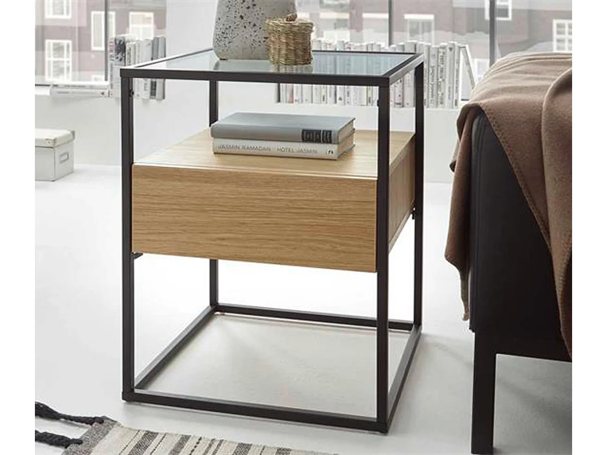 Table d'appoint en bois et métal coloris chêne - L.43 x H.54 x P.43 cm