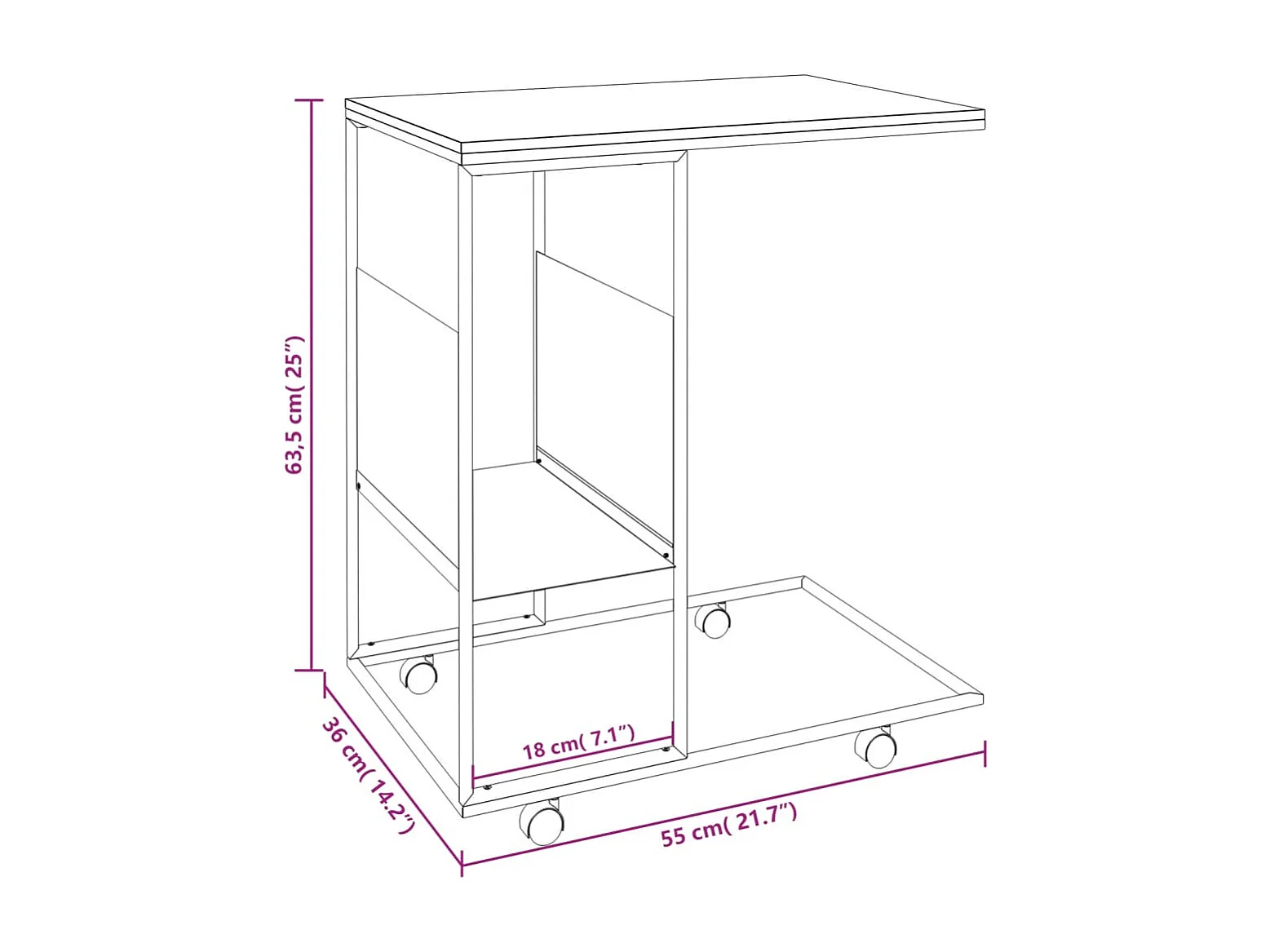 Table d'appoint sur roulettes bois blanche 55 x 36 x 63.5 cm DEC031295