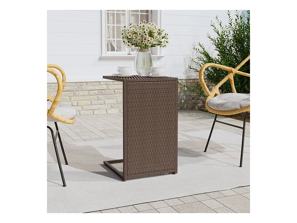 Table basse en forme de C marron 40x35x60 cm résine tressée GHR26668