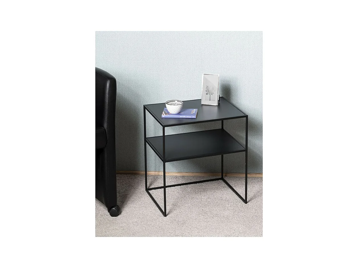 Table basse table d'appoint guéridon bout de canapé 2 niveaux acier noir