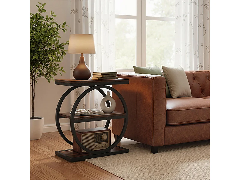 Table d'appoint étroite à 3 Niveaux, Table Basse en Bois, Avec étagère, Peut être utilisé comme canapé de salon à proximité