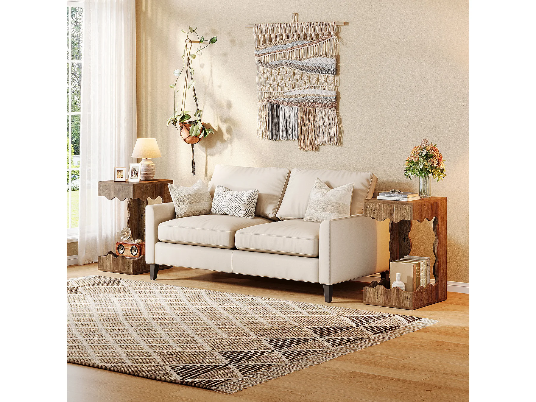 Table d'appoint étroite, table de chevet à deux niveaux en forme de C pour salon, table de nuit de style campagnard pour chambre à coucher