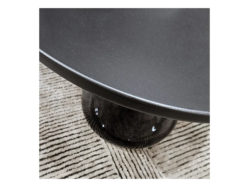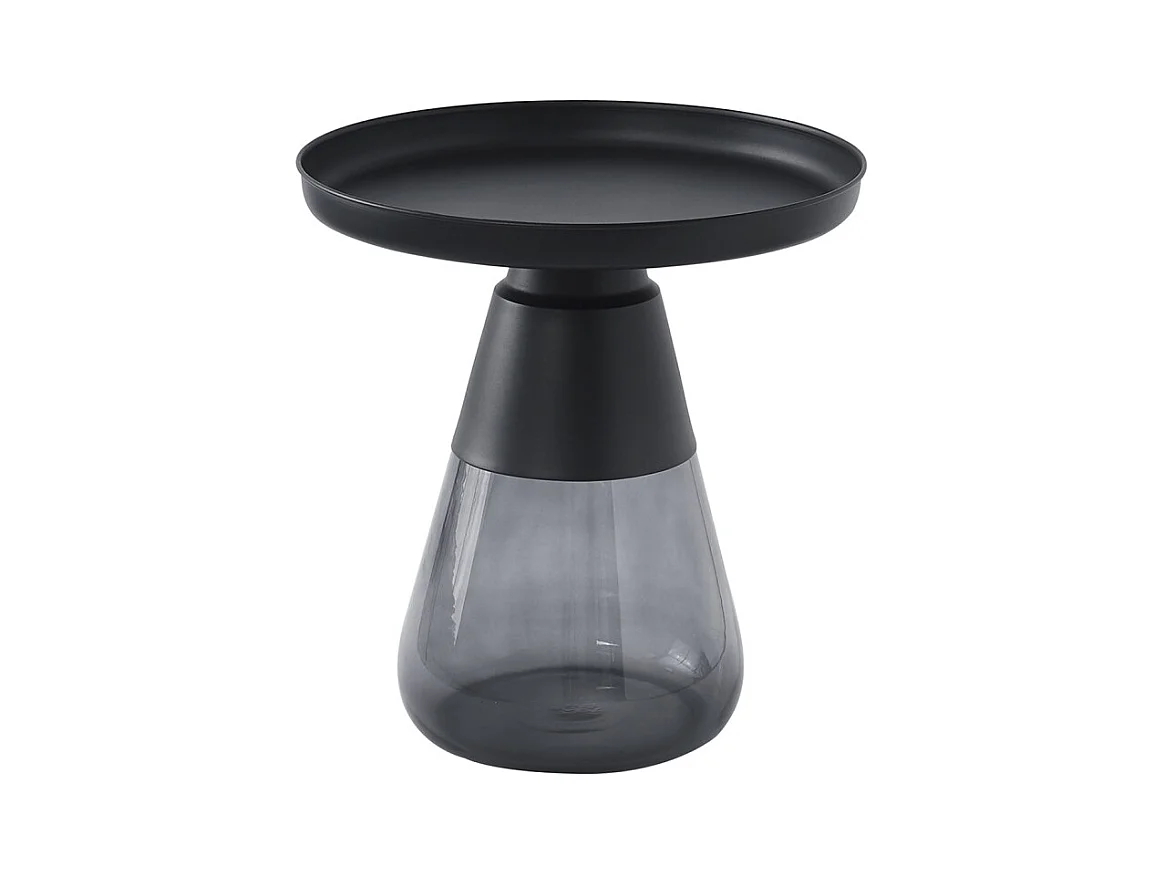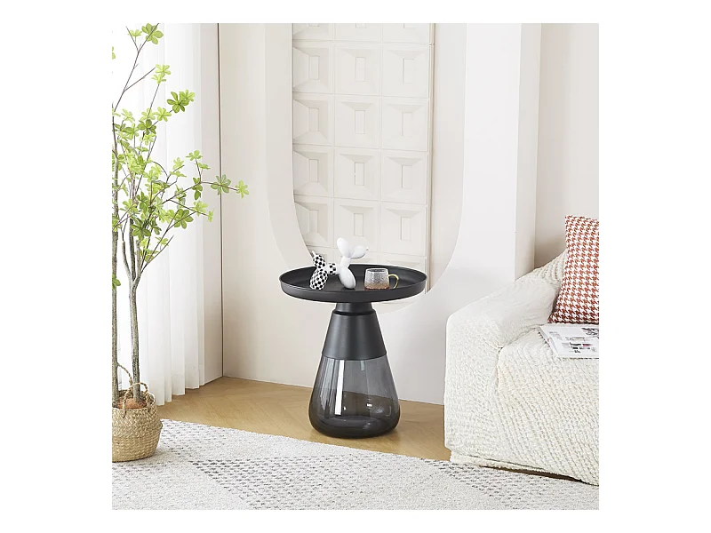 Table d'appoint H. 53 cm verre trempé noir fumé et métal noir - SHURI