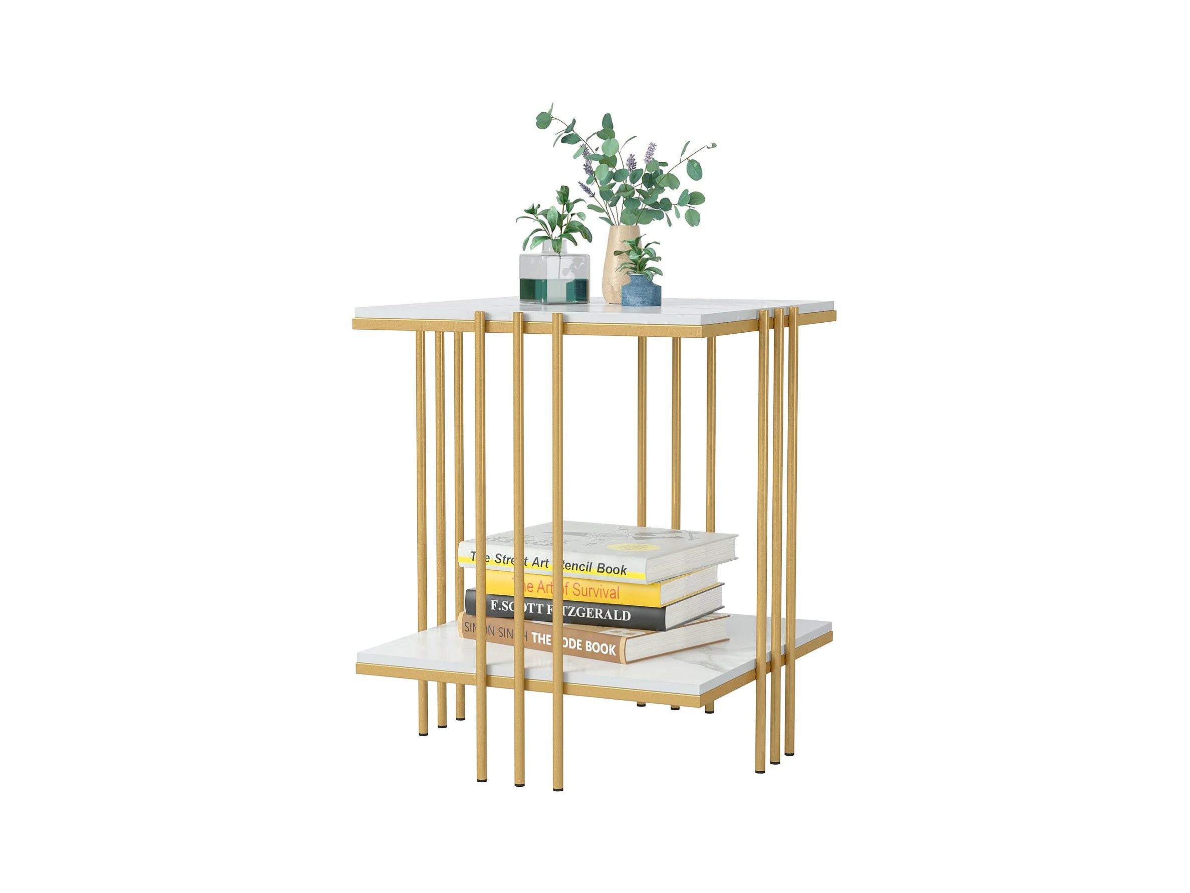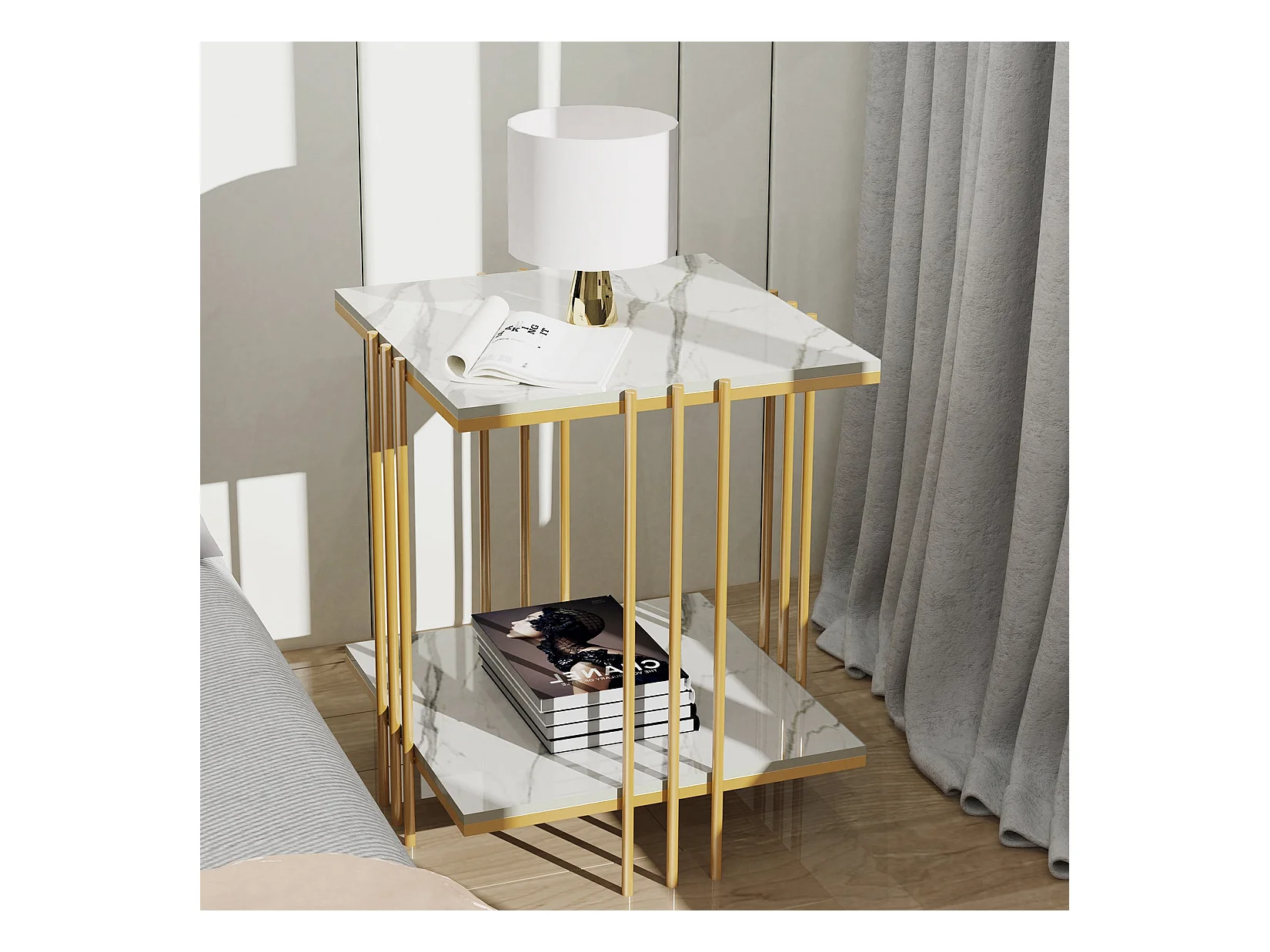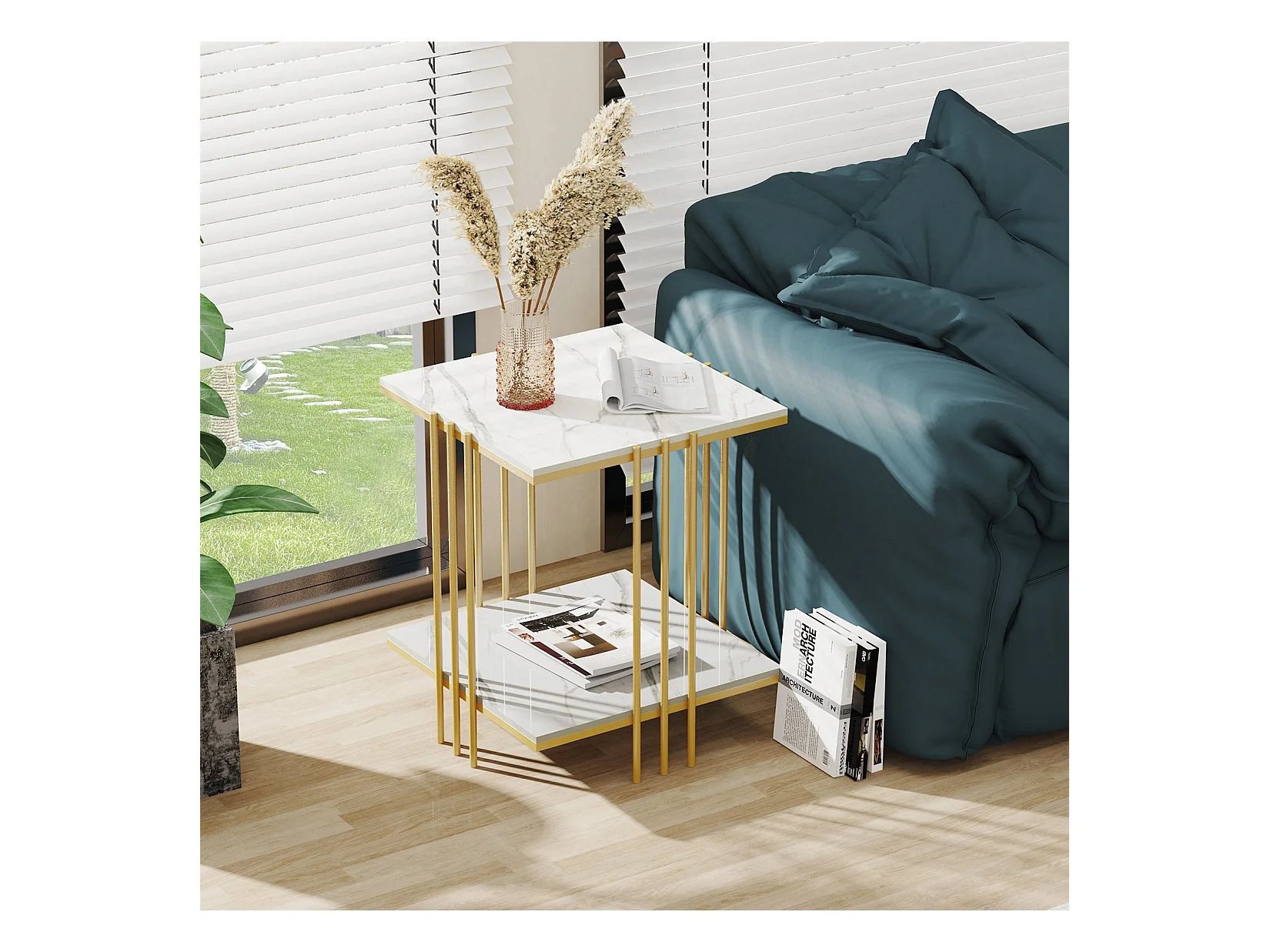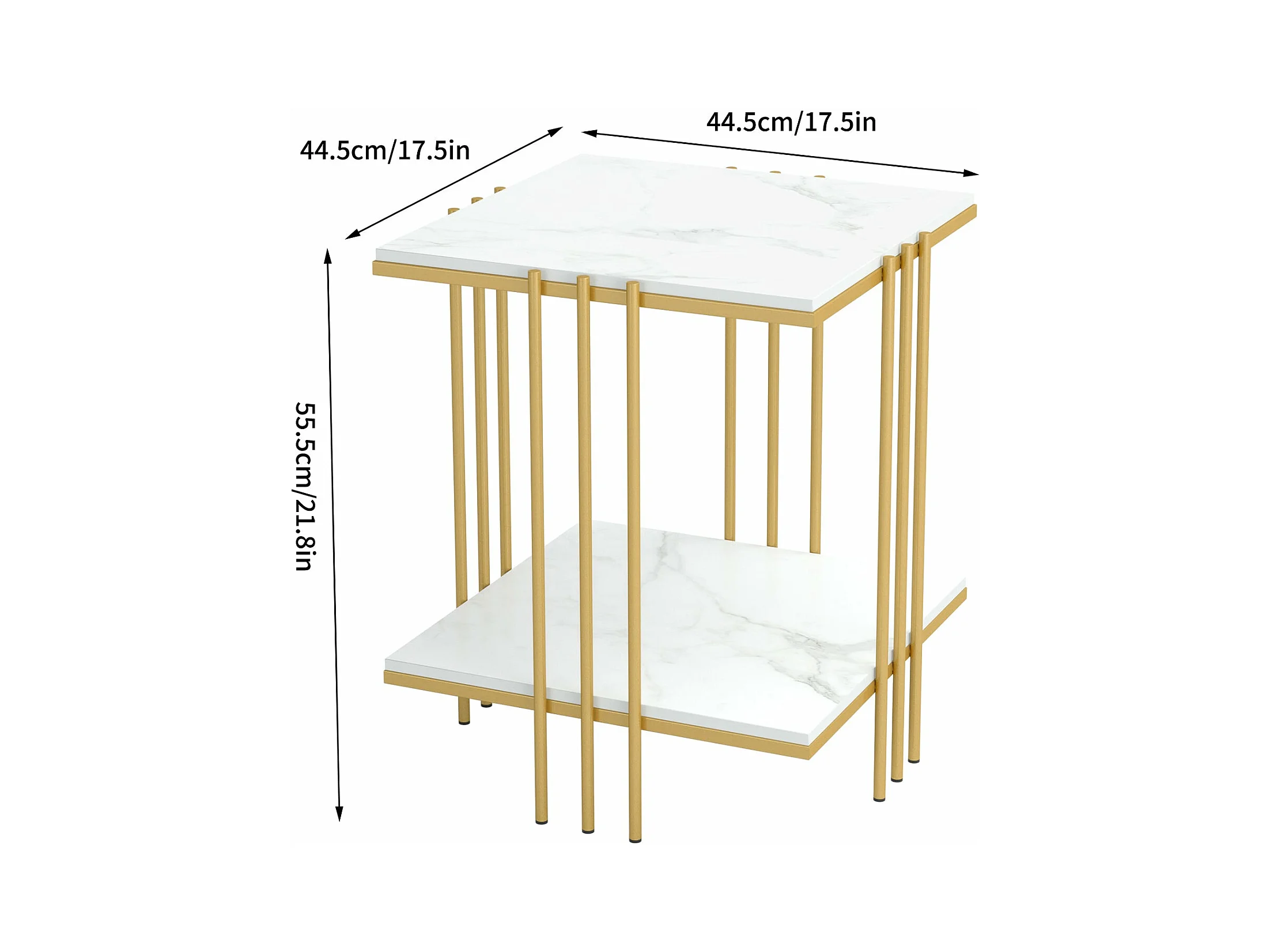 Table d'appoint marbre carrée bout de canapé à 2 niveaux moderne pour salon chambre 45x45x56cm