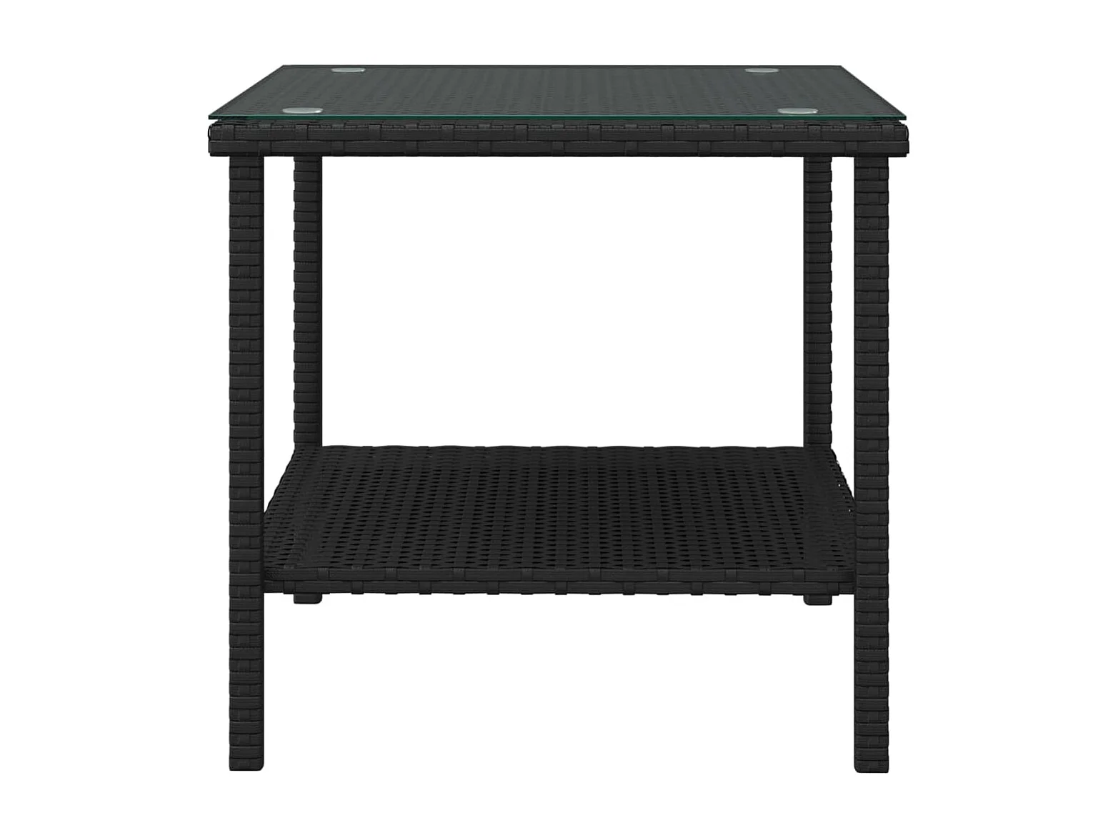 Table d'appoint noir 45x45x45 poly rotin et verre trempé