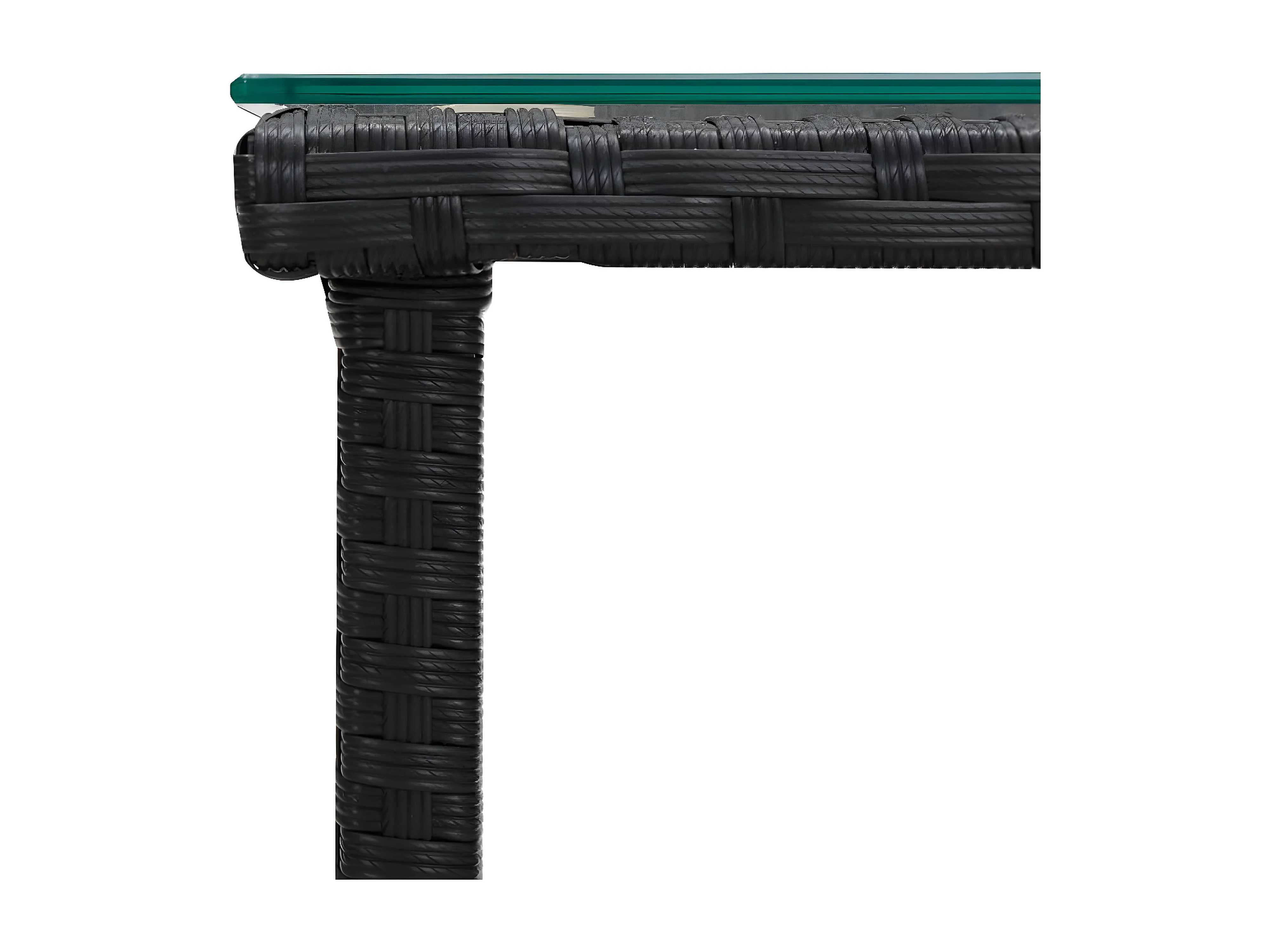 Table d'appoint de jardin avec dessus en verre noir rotin