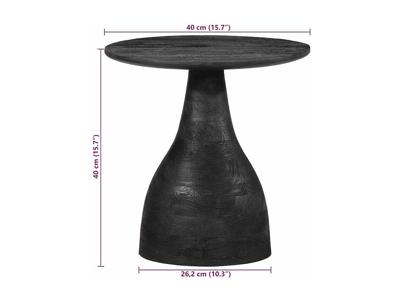 Table d'appoint noir Ø50x40 cm bois de manguier massif