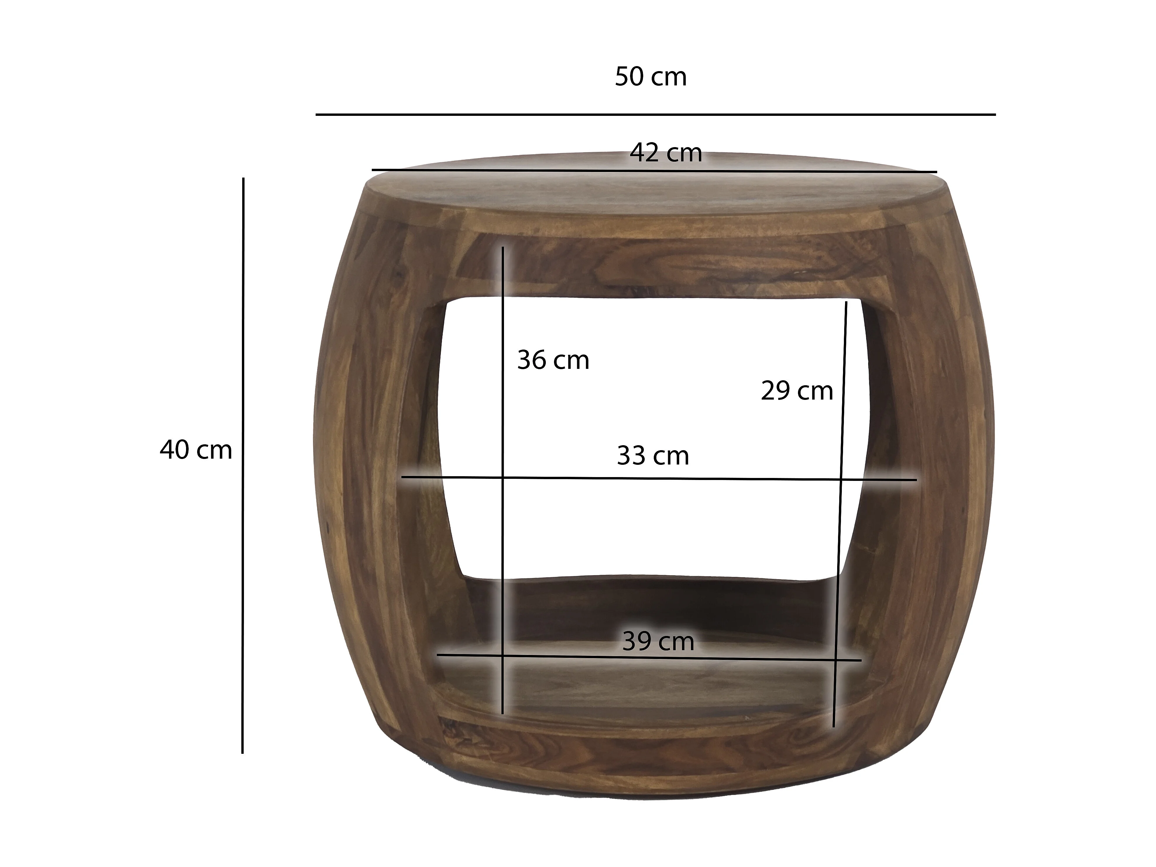 Table d'Appoint Ø 50cm Sheesham Bois Massif Rond Rangement Basse Table de Salon