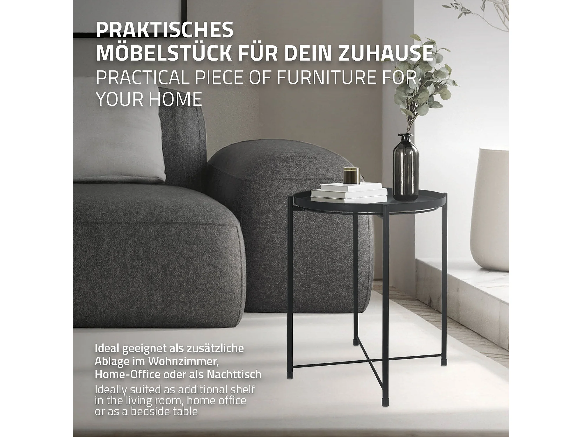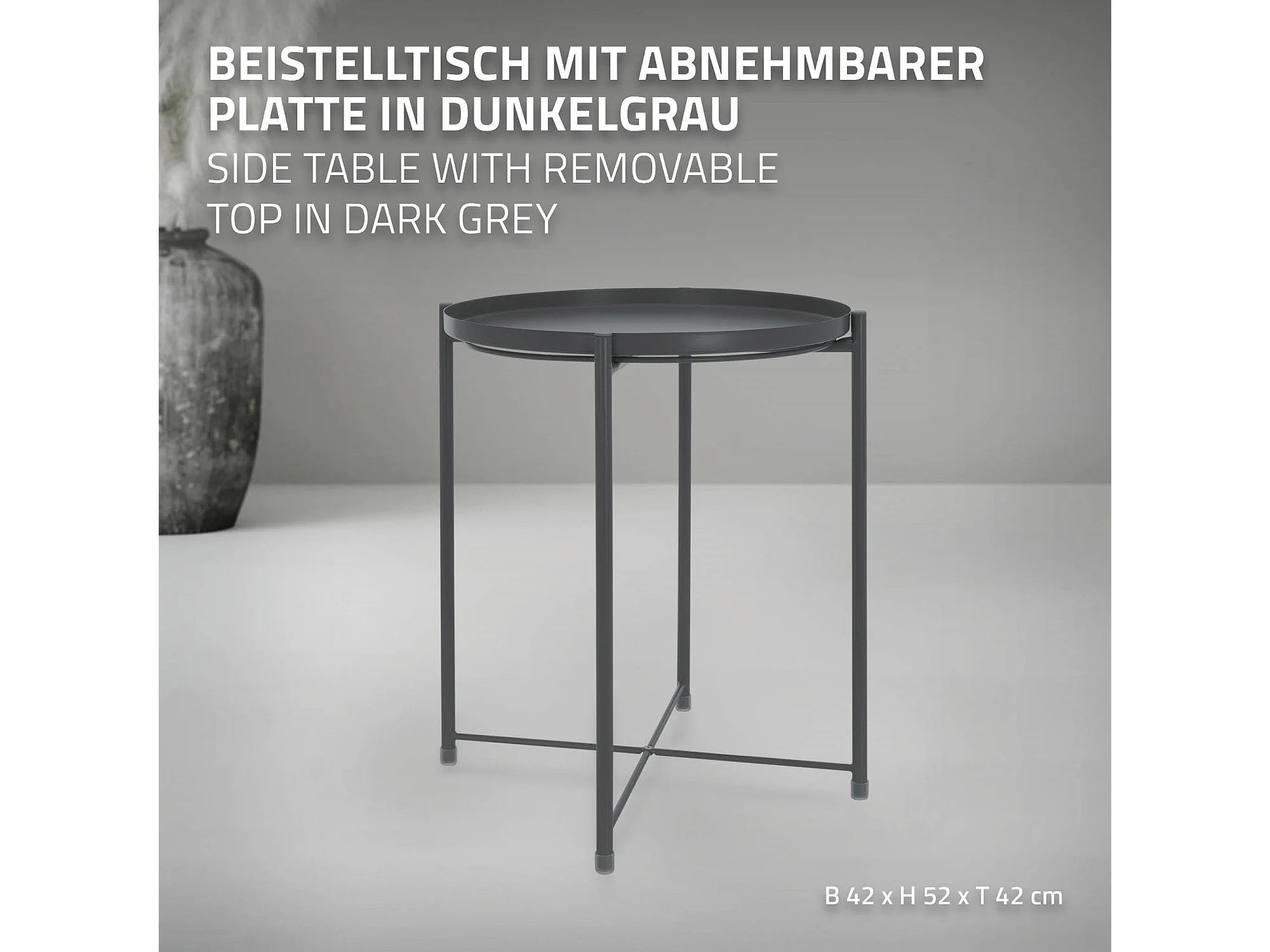 Table d'appoint rond en gris foncé plateau amovible bout de canapé table basse