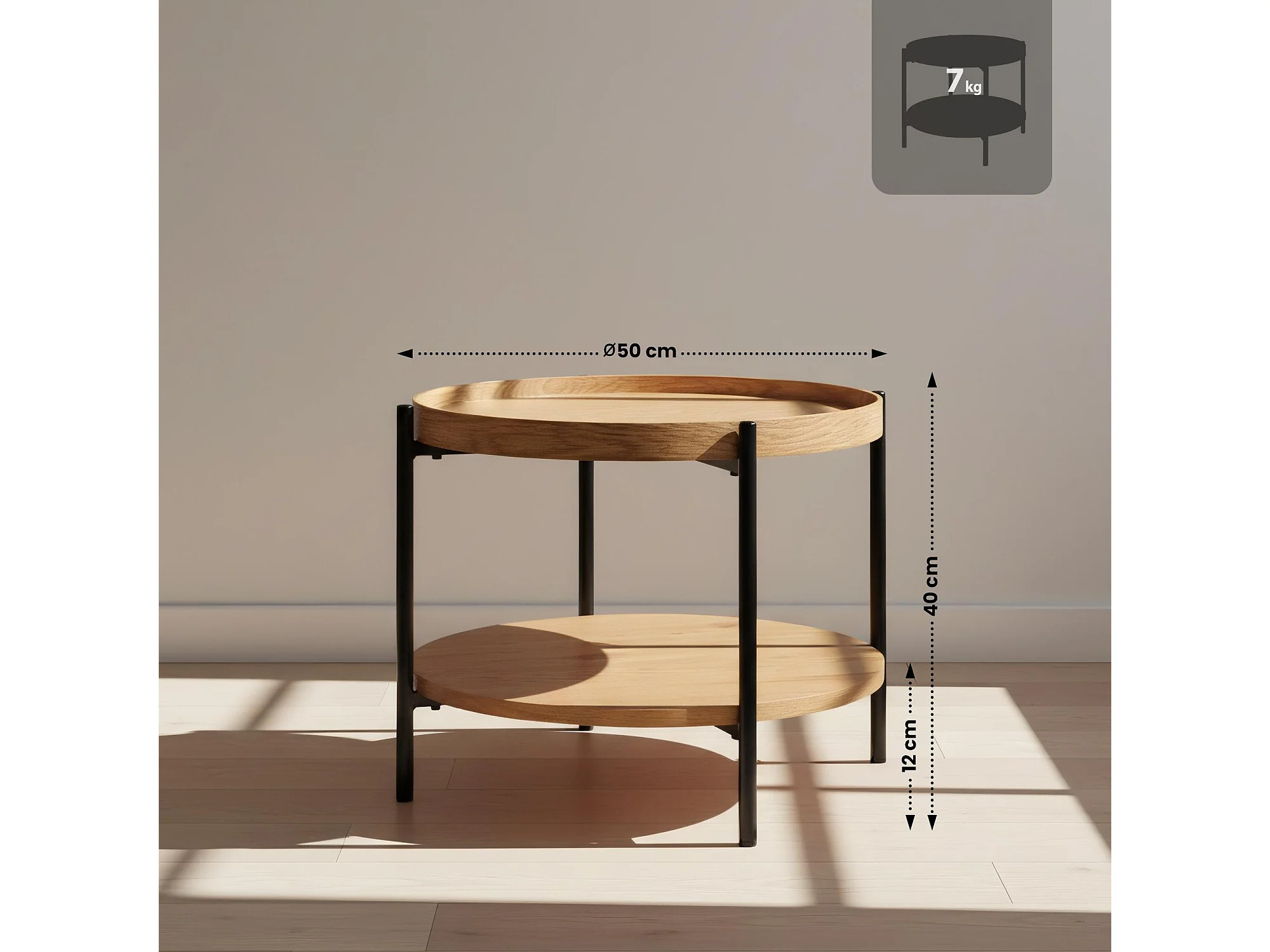 Table d'appoint - rond Ø 50 cm - Bois - Nature - Corbitan