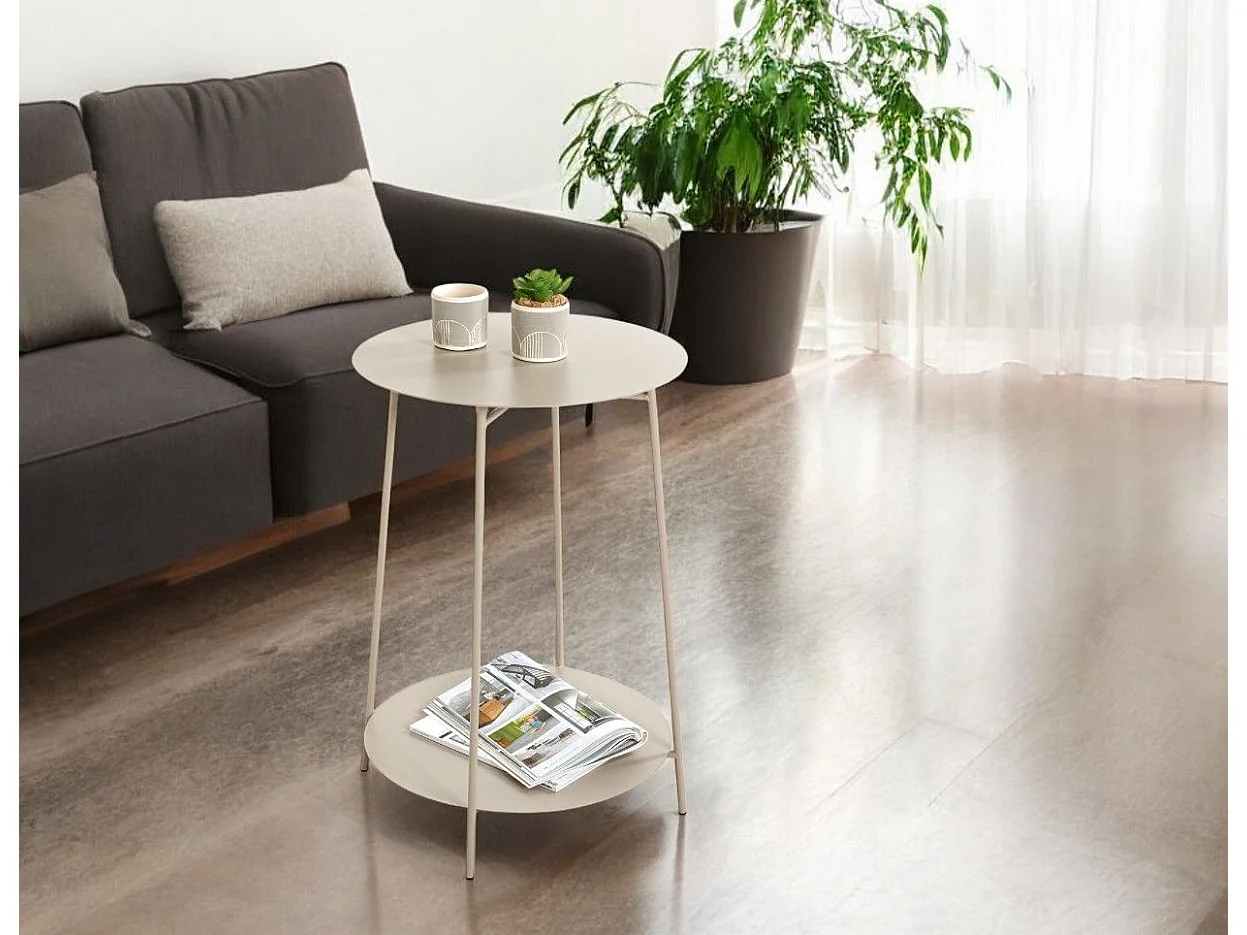 Table d'appoint ronde avec 2 plateaux en métal gris - Diamètre 50 x Hauteur 50 cm