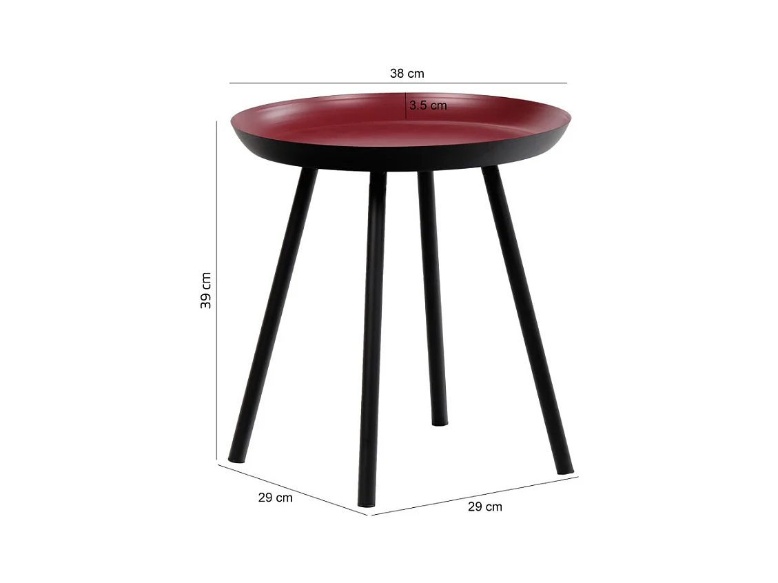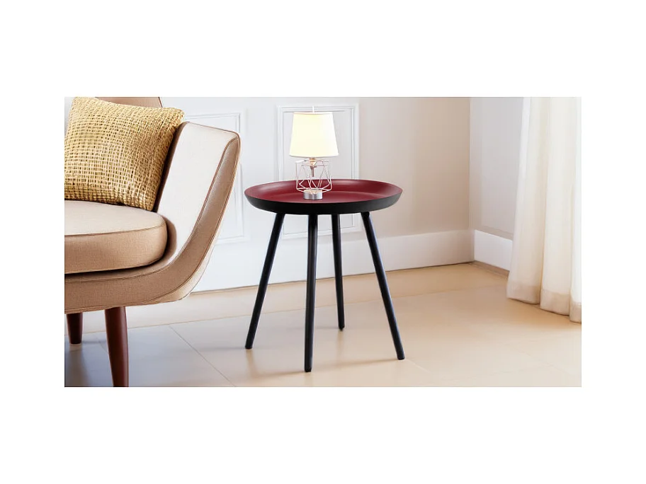 Table d'appoint ronde D. 38 cm métal rouge et pieds noirs - LAK 8969
