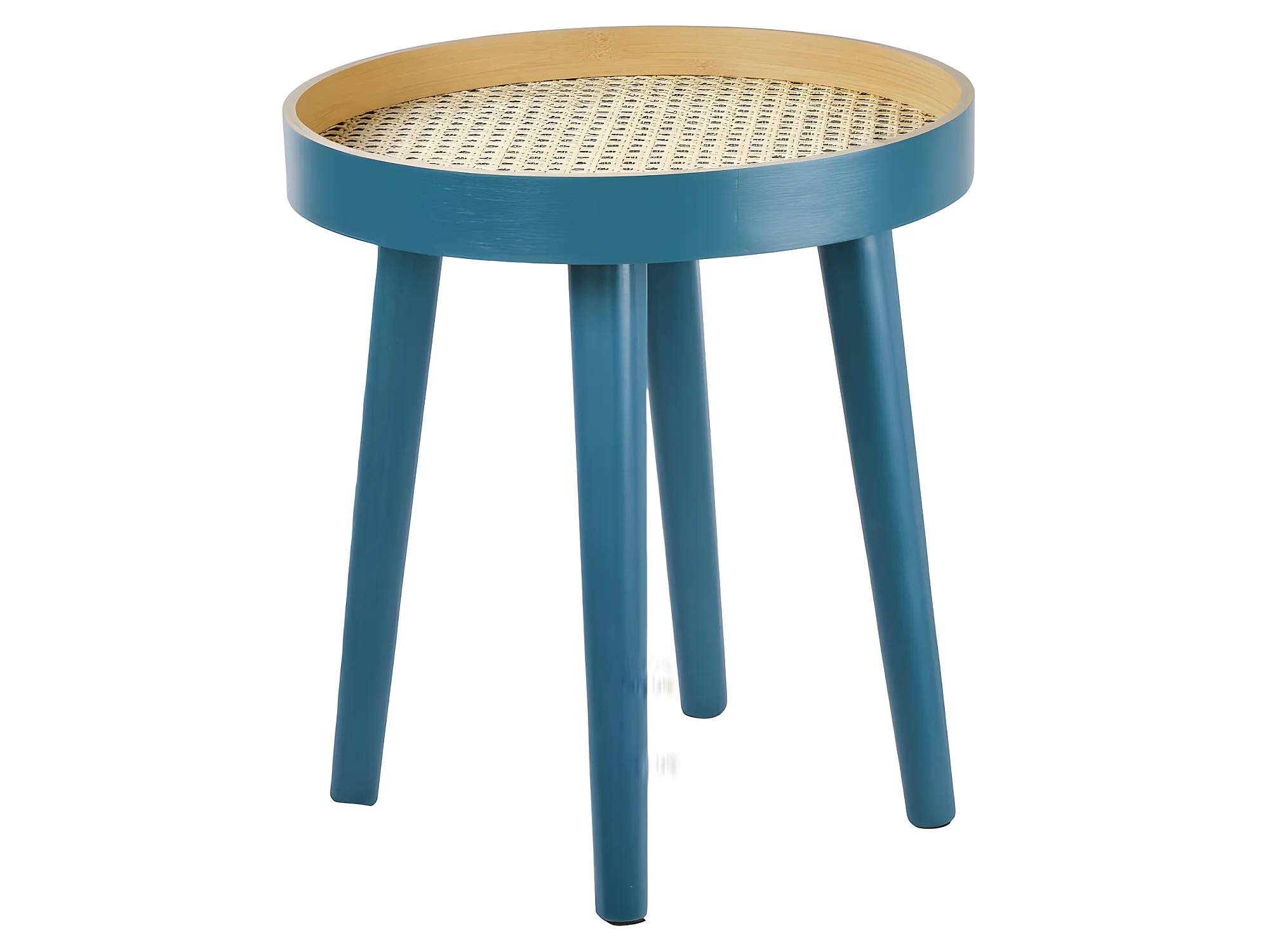 Table d'appoint ronde D. 40 cm en bois bleu avec cannage - PABLO 0900