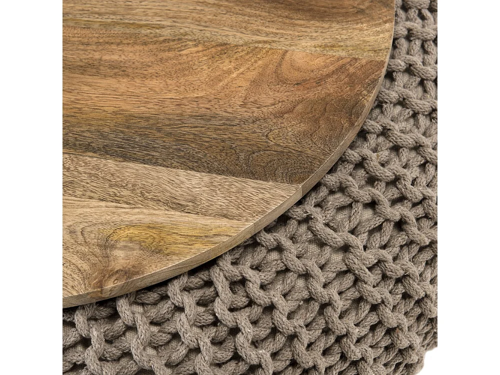 INDRA - Table d'appoint ronde 80cm plateau bois Manguier et coton gris