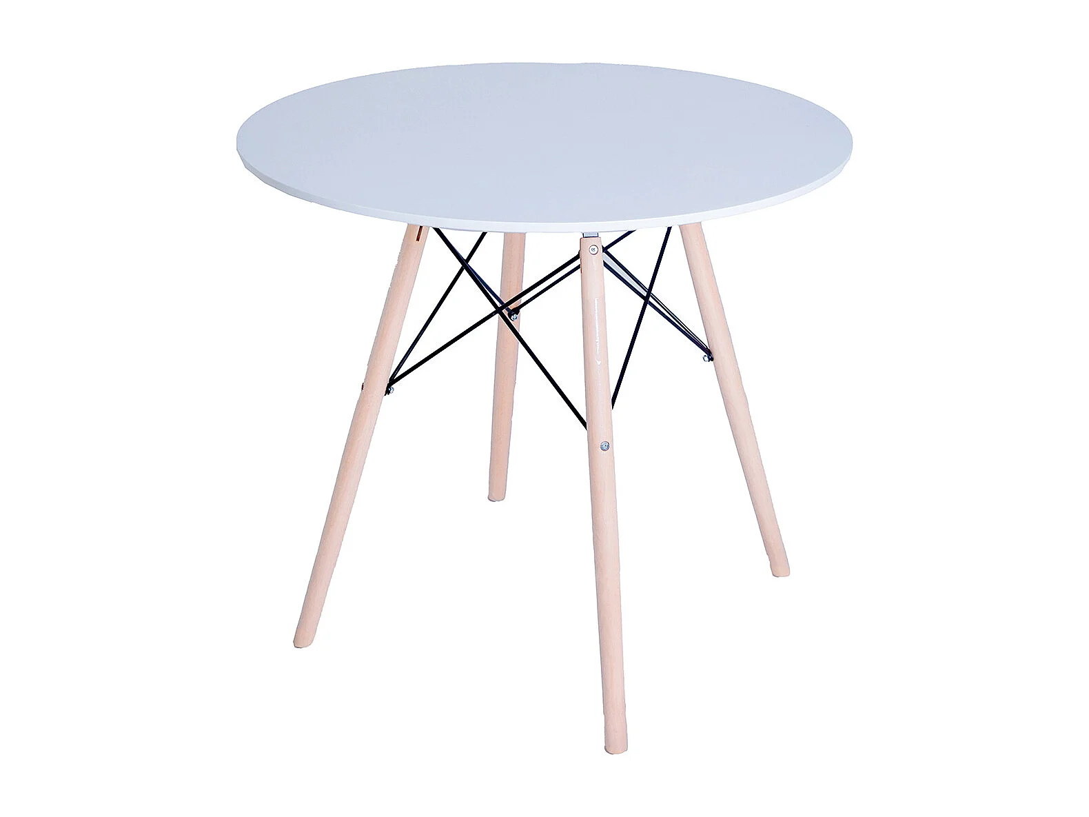 Table d'appoint ronde table de salle à manger blanche avec pieds en bois naturel coloris Blanc - Diamètre 60 x Hauteur 70 cm