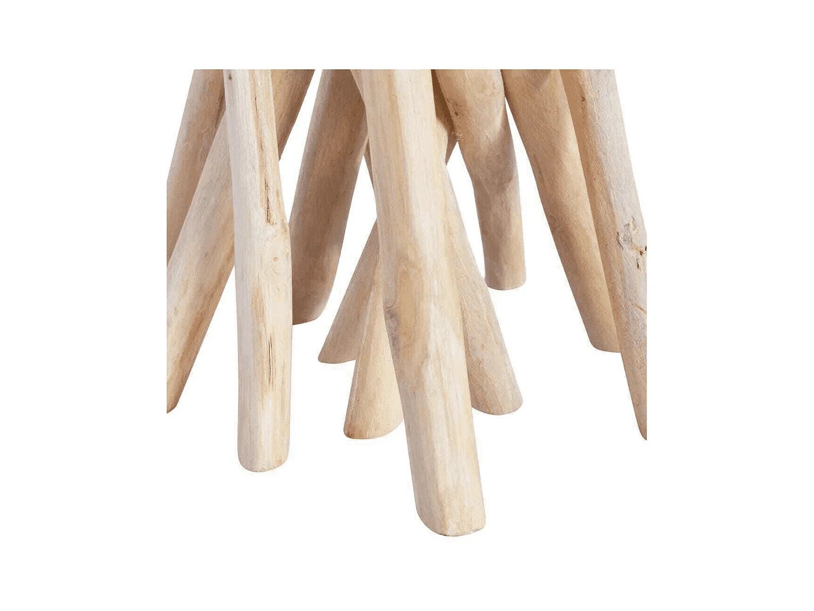 Table d'appoint ronde verre et pieds teck massif clair Nieng