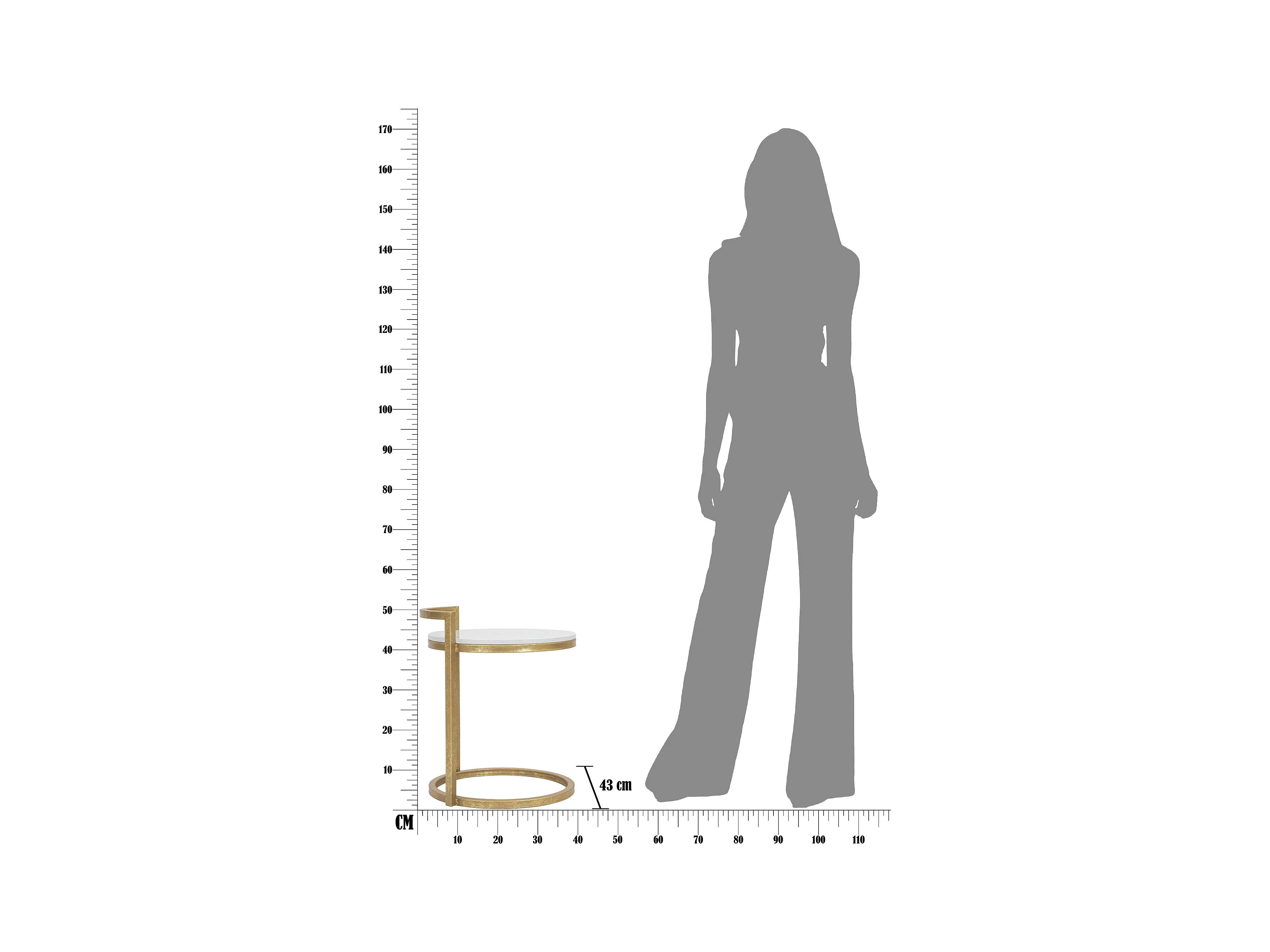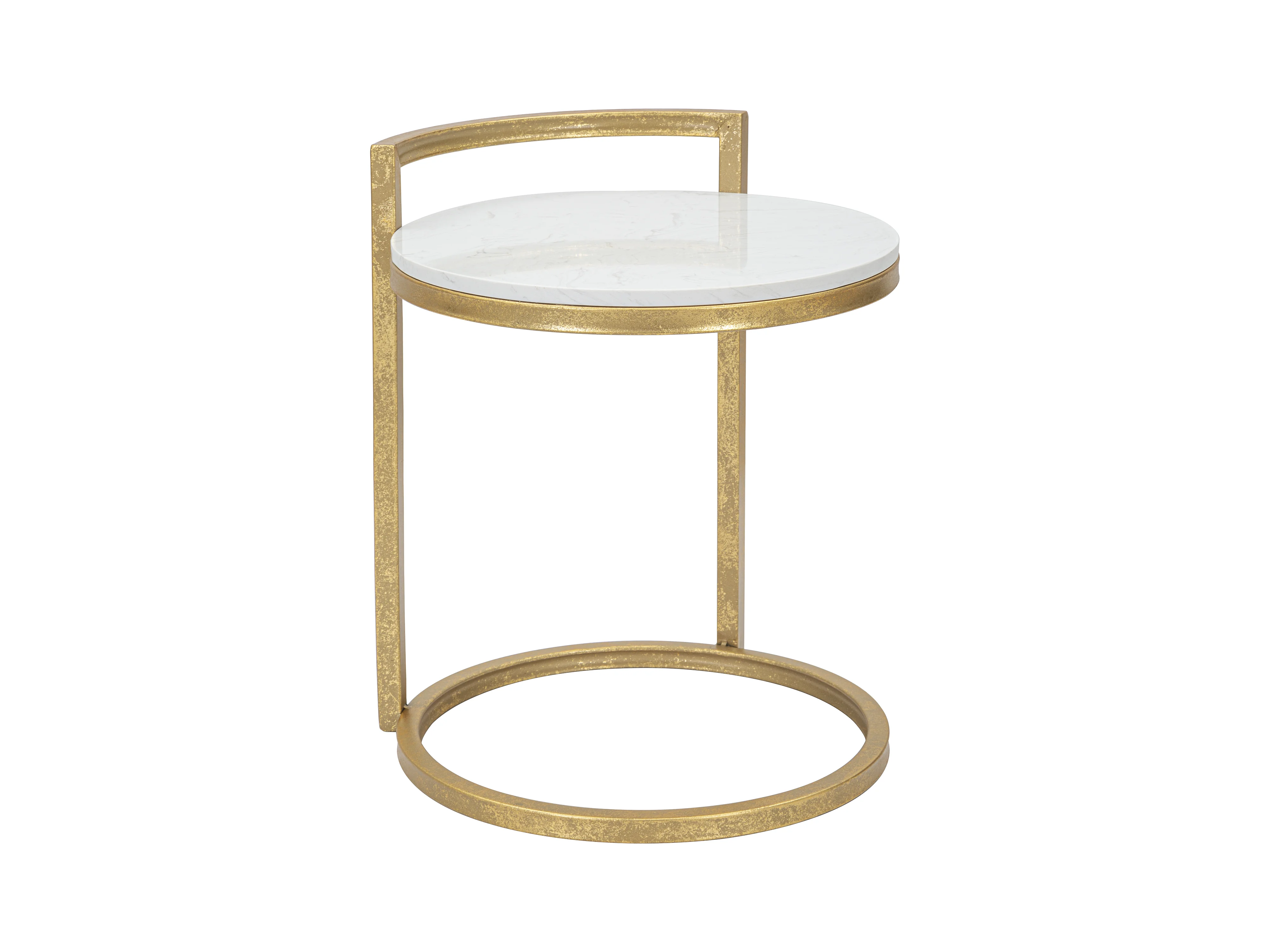 Table d'Appoint Effet Marbre "Spirale" 61cm Blanc & Or